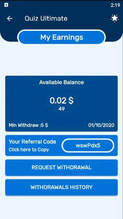 Best Quizzy App with Earning system is an android Application that allows to users to play (answer to questions and make money app), collect rewards points & request withdrawal if they achieve the minimum withdraw amount fixed by app manager (You)! Users can also collect rewards points by inviting their friends to register to this app by referral system (referral code).