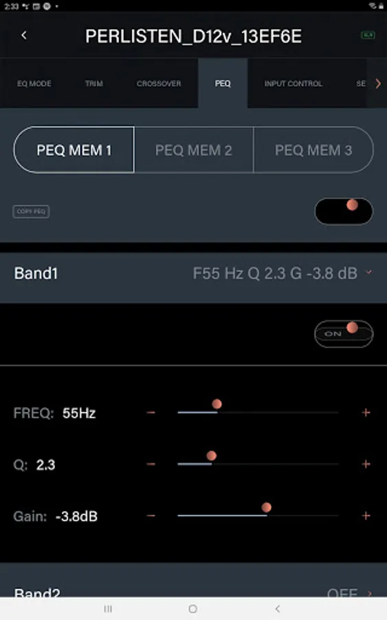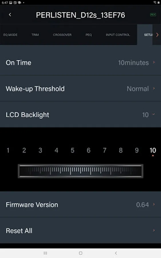Control for up to 8 subwoofers with each woofer having 3 banks of 10 PEQ’s, Time Delay, Phase, up to 6 standard EQ’s, 6-24dB low-pass crossovers, and polarity, are all tools available to optimize your room performance. Our APP uses BLE to communicate with your Android based devices.