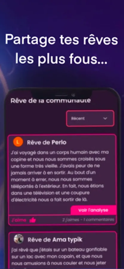 💬 Social interaction: Like and comment on dreams shared by the community to exchange ideas and tips.
