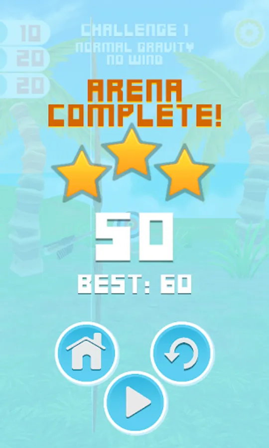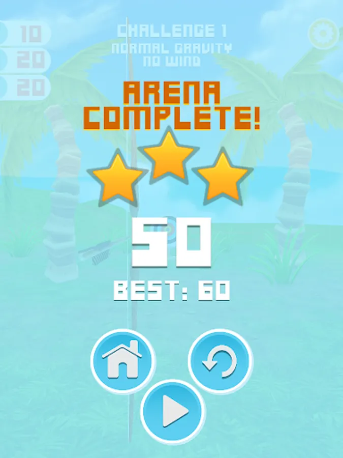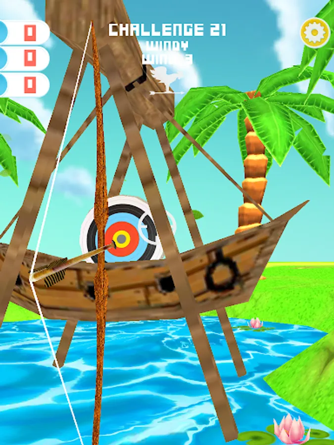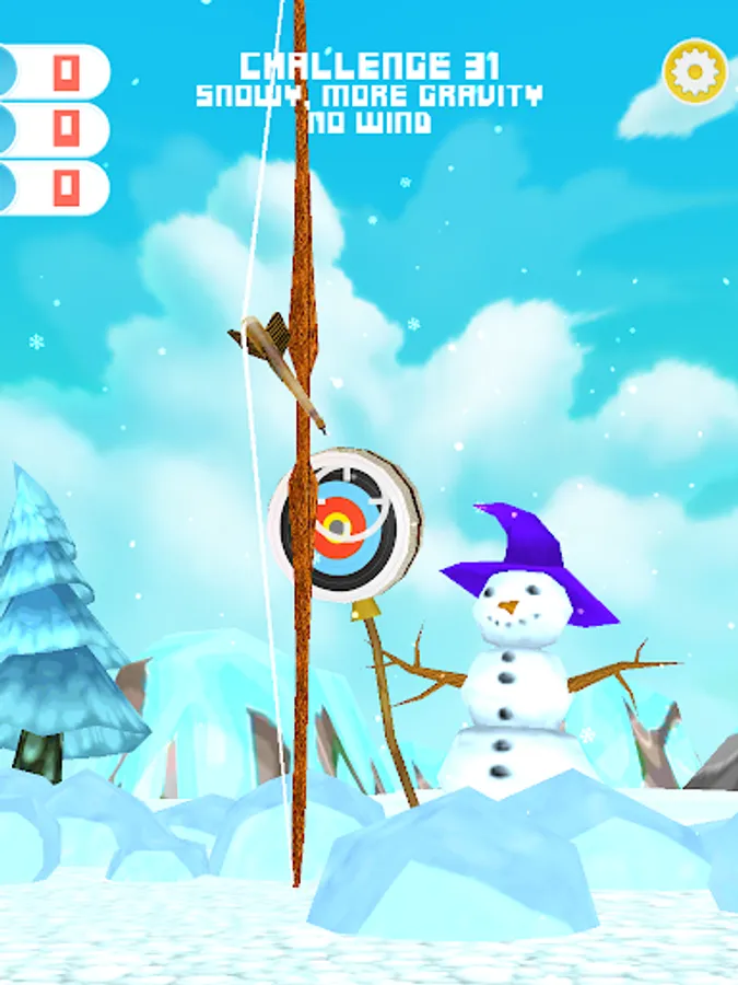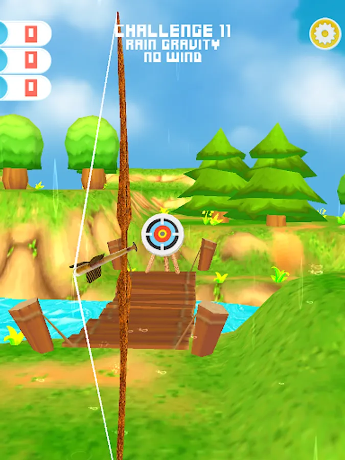 Simple touch-interface, specifically designed for mobile. Suitable for phones and tablets. Touch to pull the bow and drag to aim the arrow. Release to fire the arrow at those bulls-eye targets. Hit the arrow at the center of the bullseye to earn the most points. Earn star ratings based on your performance (accuracy of the shoots). Aim carefully as the game runs under a physic-engine which takes into account obstacles faced by real archers, such as wind and gravity. Some levels include hurdles in the form of weather and extreme conditions, such as rain and snow. Variety of challenges (longer, taller, farther), including moving bulls-eye targets.