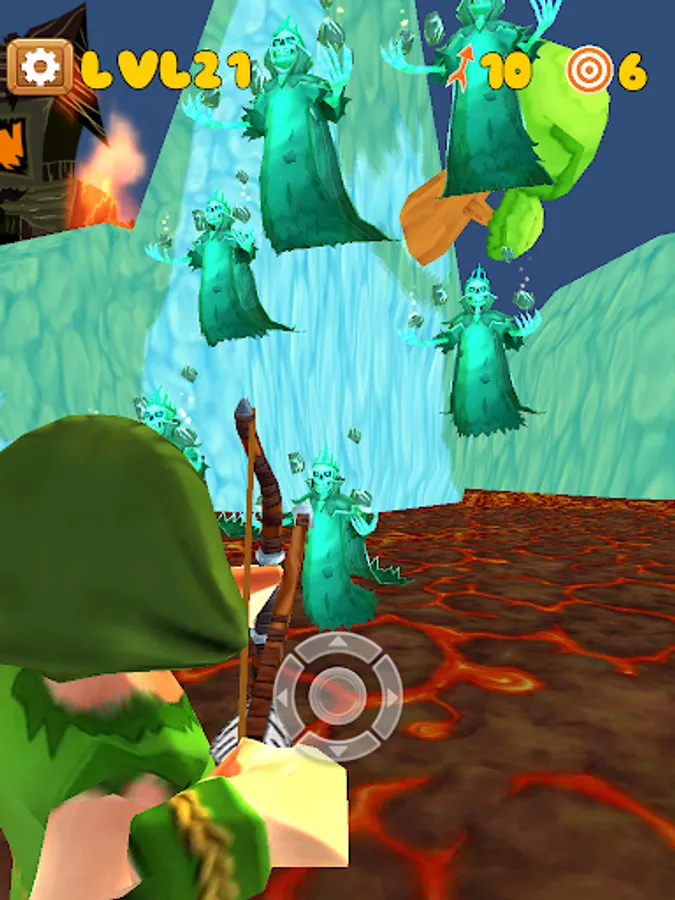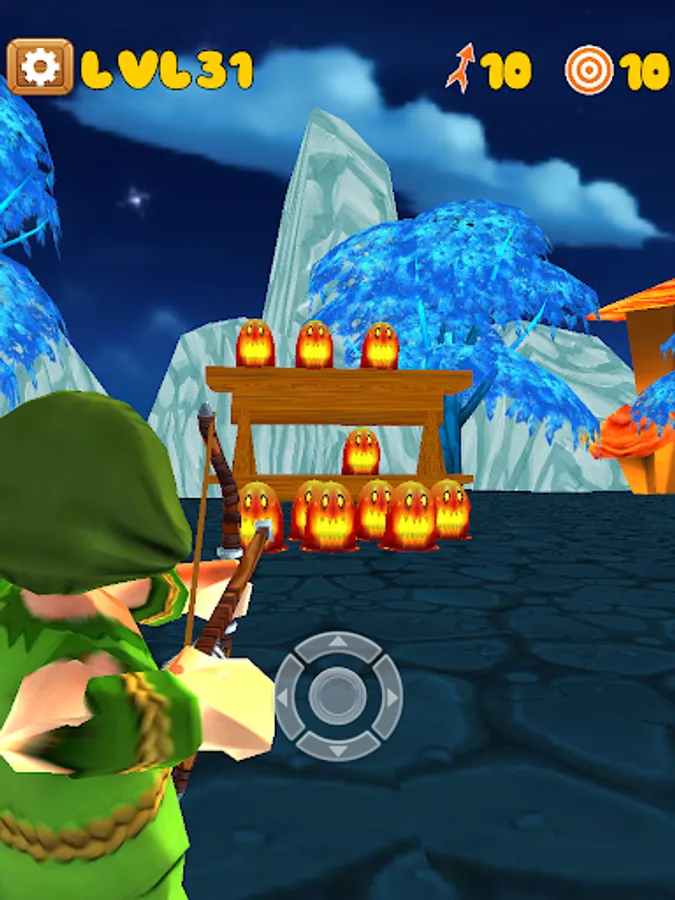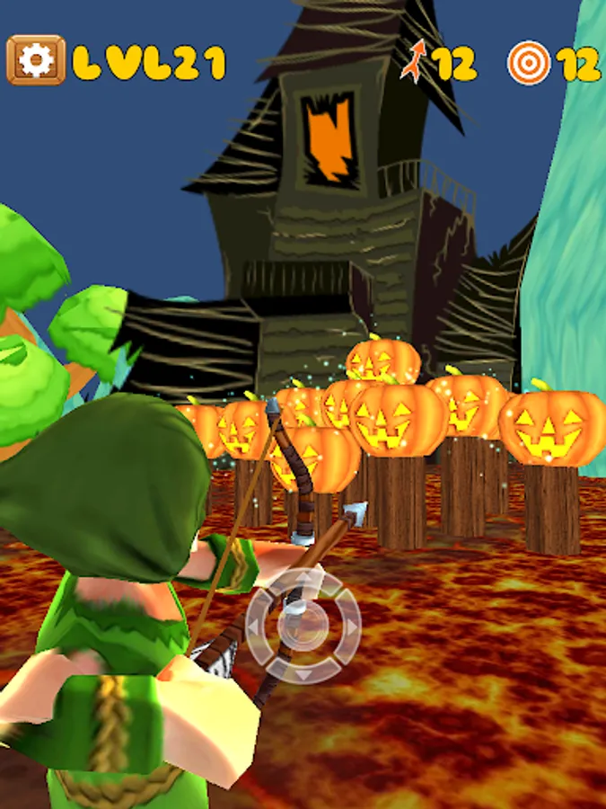 An archery game/simulator set in a 3D fantasy environment. Use your bow and arrows to conquer multi-level challenges, set in haunting locations. Destroy targets such as exploding Halloween pumpkins, levitating demons, monsters and slime.