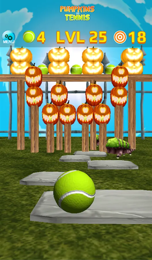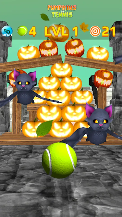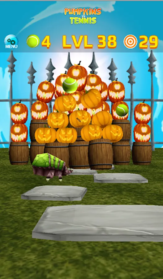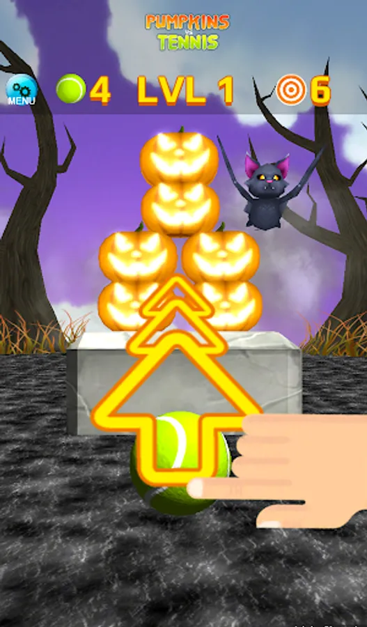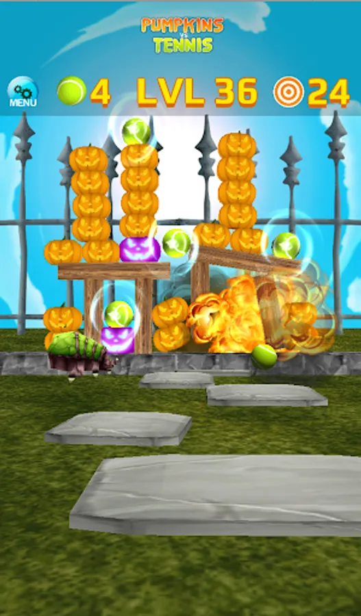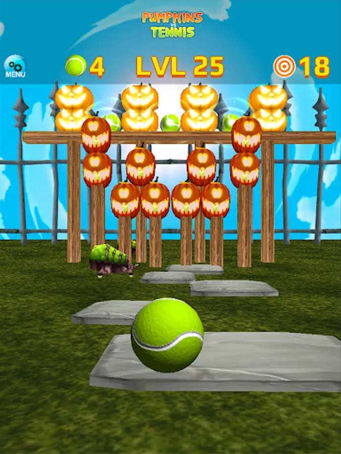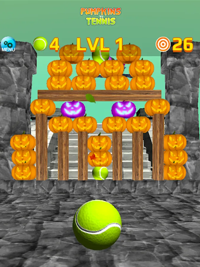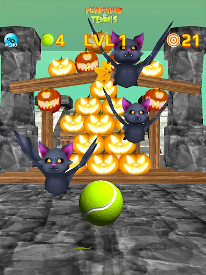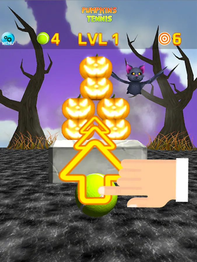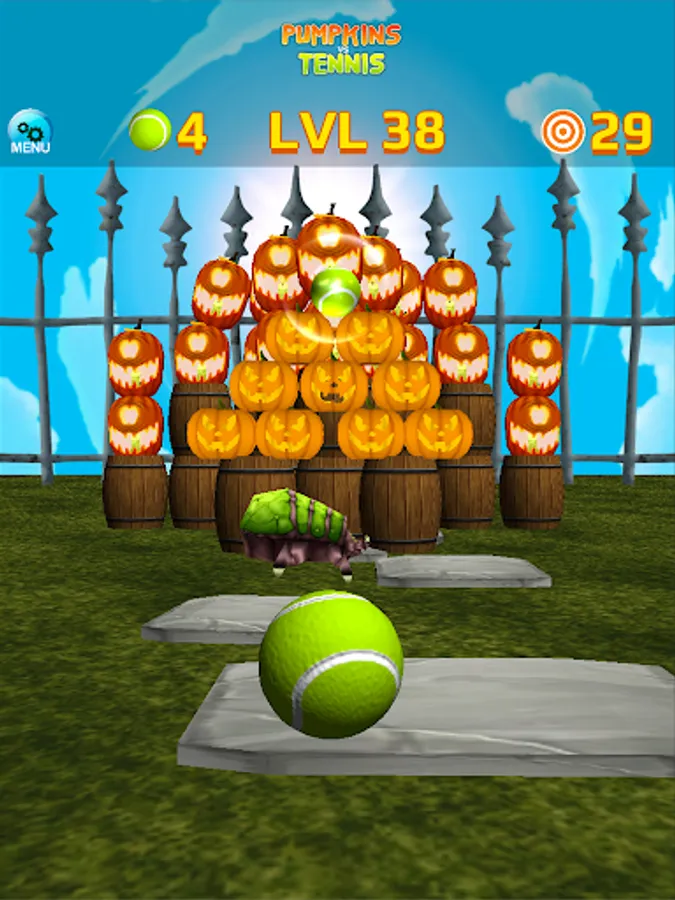 * Hit pumpkins with tennis balls, with simple touch and swipe interface.