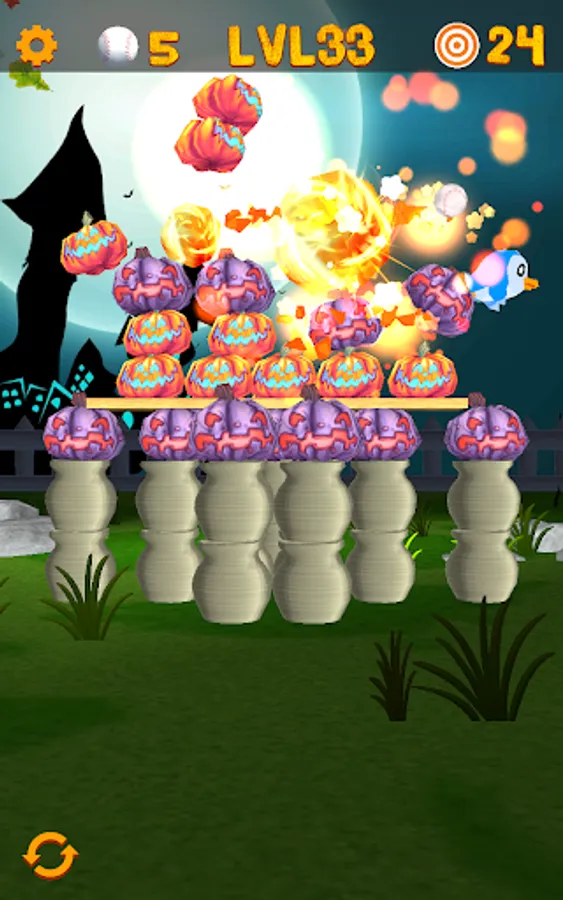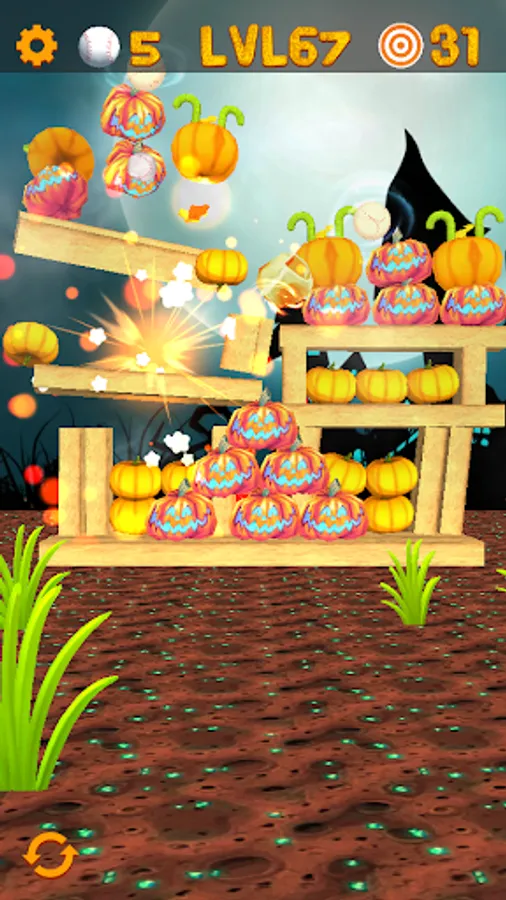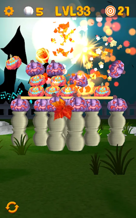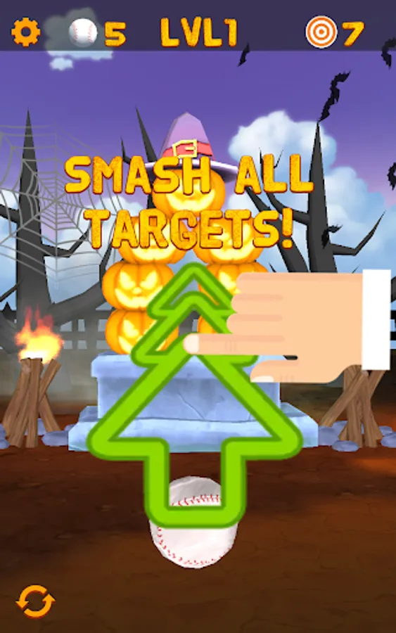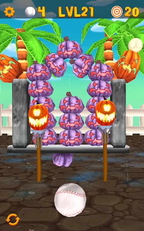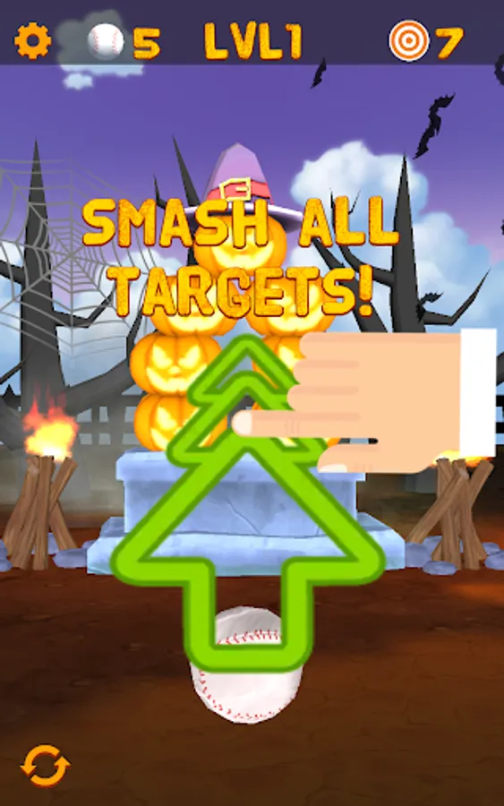 Smash, blast and knockdown pumpkins and monsters in this fun Halloween themed 3D arcade game sequel. Your task is to aim and shoot at pumpkins with baseballs. Aim at the targets and swipe for a spectacular chain-reactions of exploding pumpkins! The simple touch-interface is specifically designed for mobile devices.