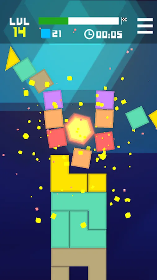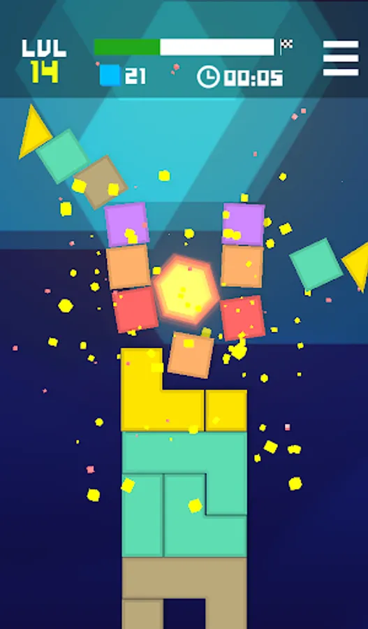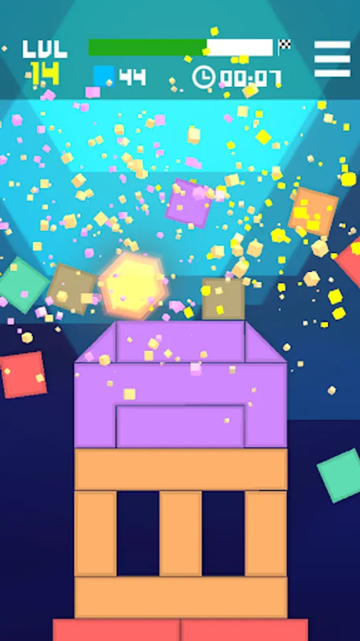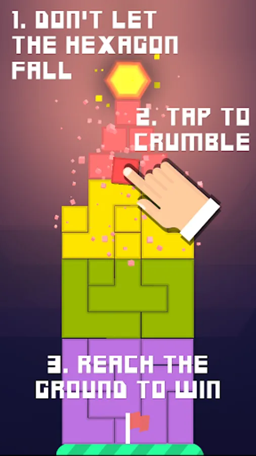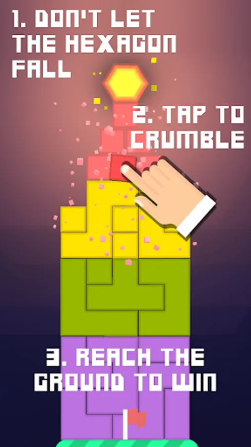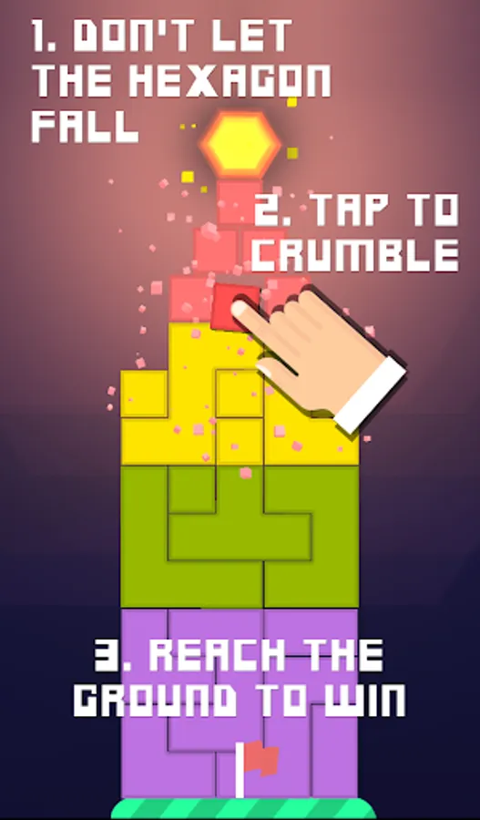Balance a hexagon (a geometry-shape with six sides) while crushing, blasting, and destroying towers of colorful-blocks. Reach the flag at the bottom of the tower to win! Be careful, the tower can tumble and cause the hexa to trip into the abys. The game mechanic is a combination of geometry logic, puzzle, strategy. Relax and pick carefully which part to destroy. Sometimes the player might need to react quickly, so the game has arcade and reflex element as well.