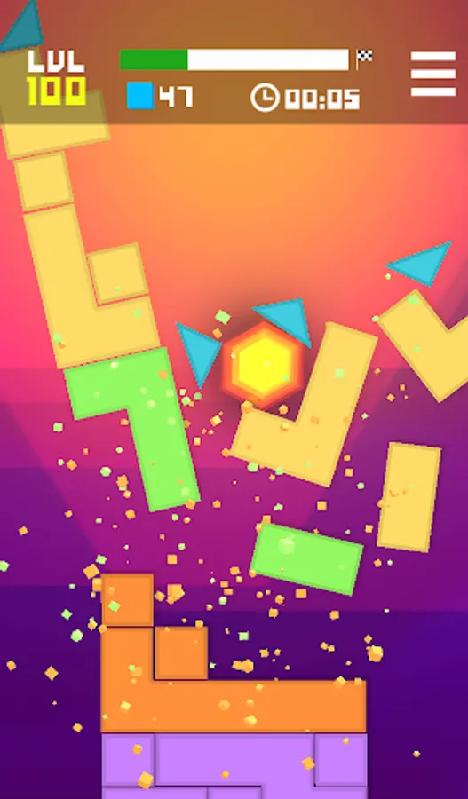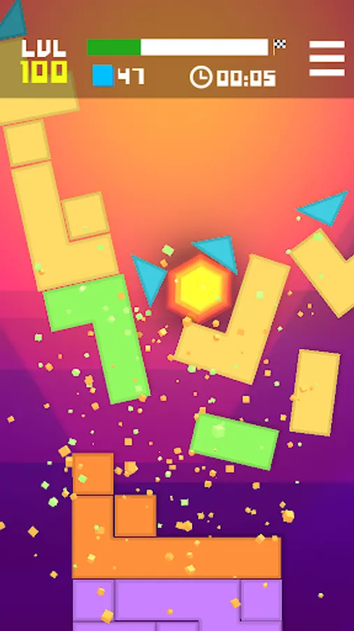 * Hand-picked sounds & special effects (the hexagon glows, things explodes with cool particle effects and gradient of colors).