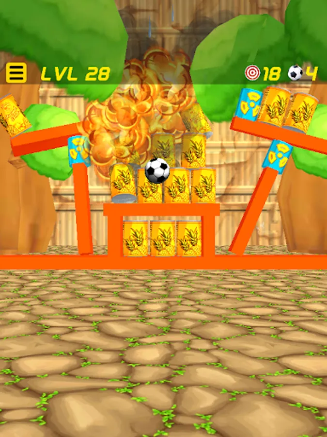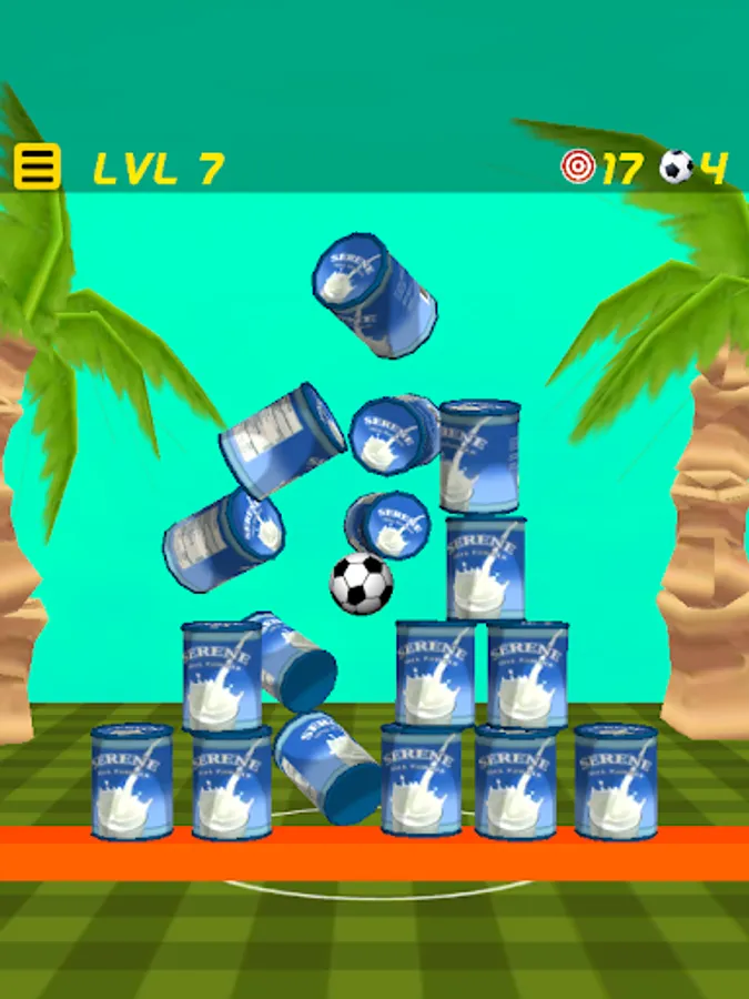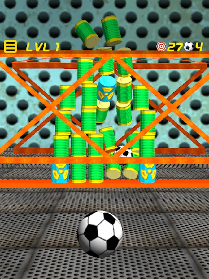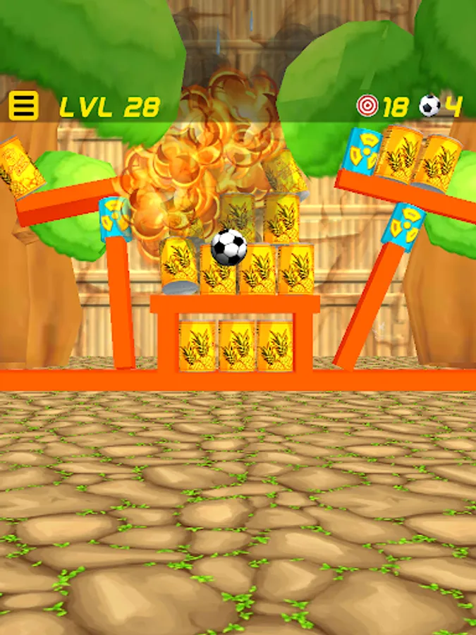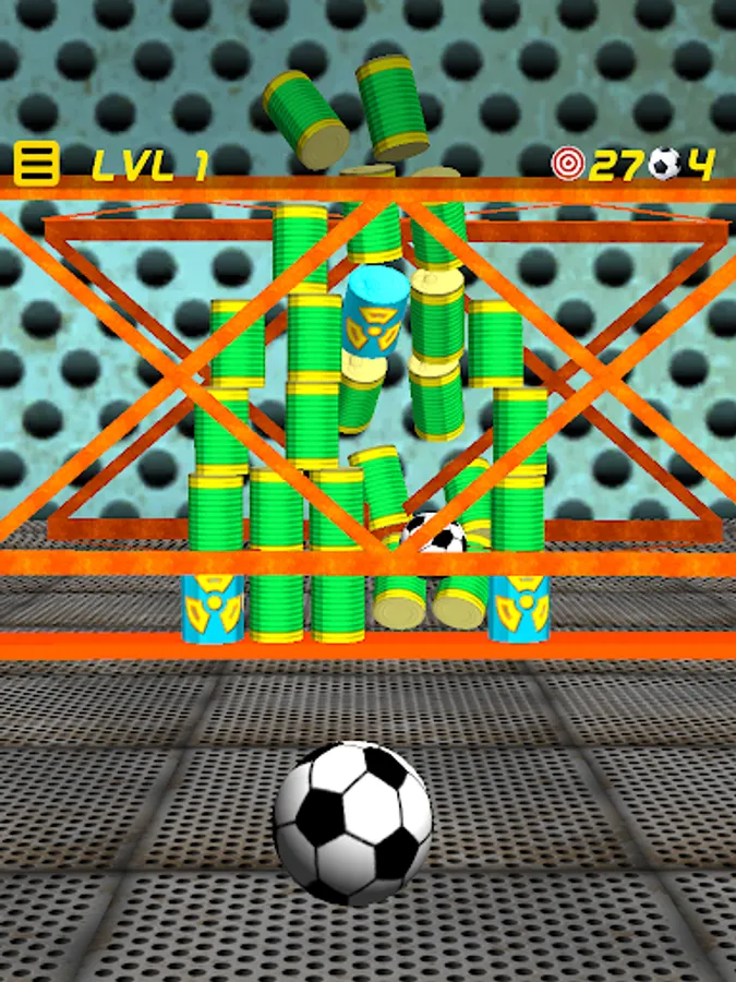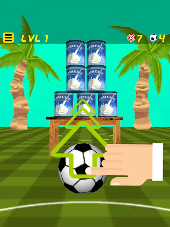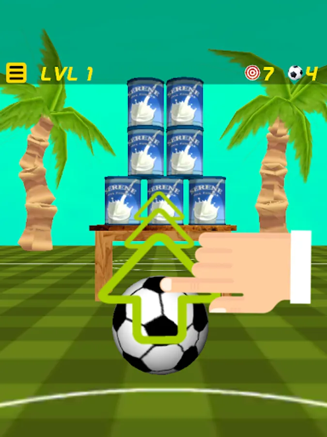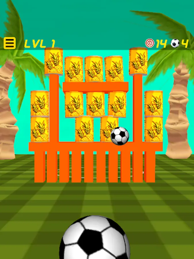 The goal of the game is to use soccer balls to knockdown all the target cans and bottles so that they hit the ground. The interface is simple and easy to use, can be played with one-touch and swipe of a finger. Just swipe or flick the screen to aim and throw the soccer ball to the direction of the targets! You have a limited number of soccer/foot ball to smash and tumble all the targets.