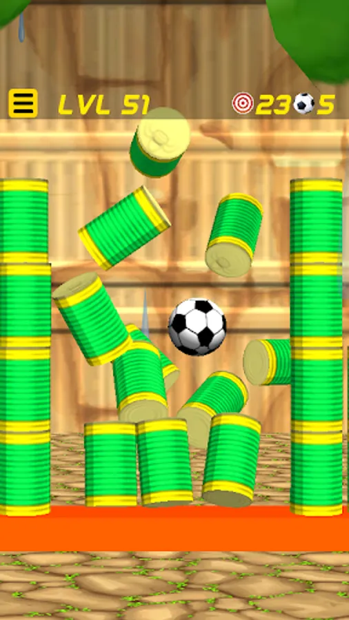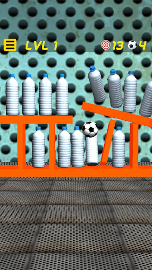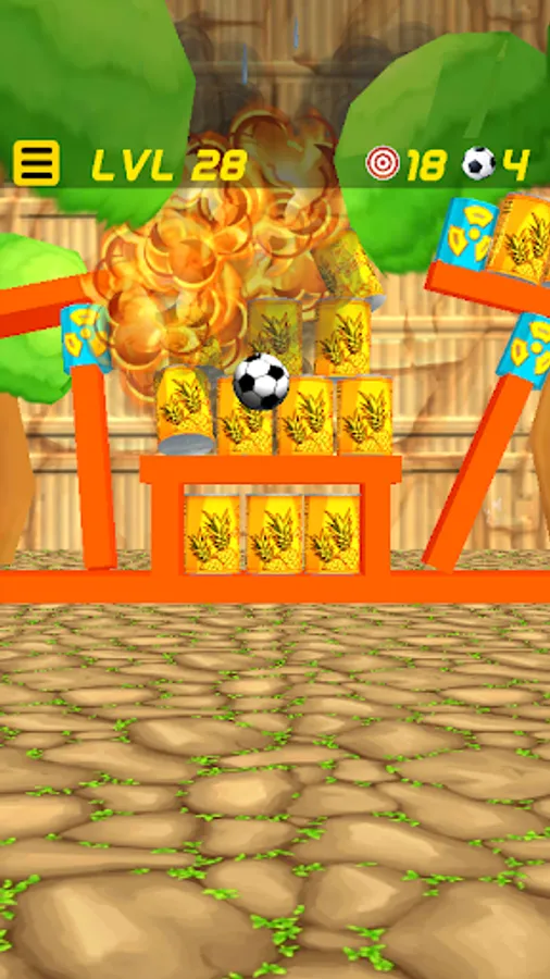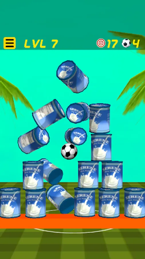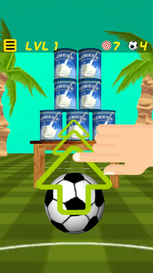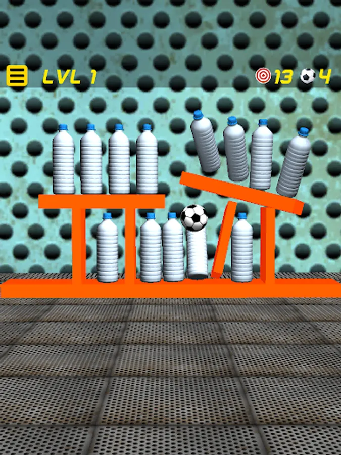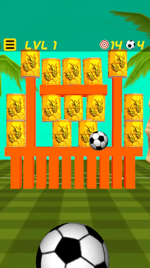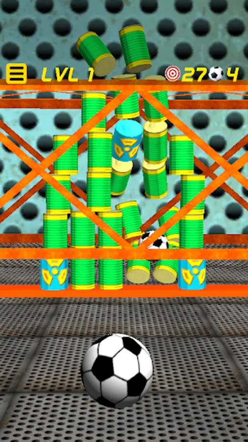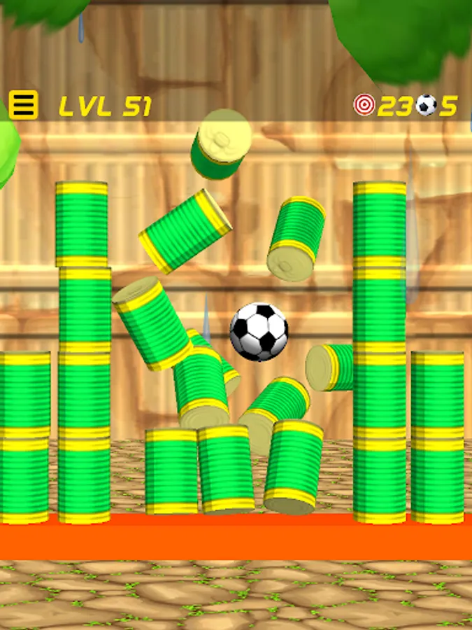 The goal of the game is to use soccer balls to knockdown all the target cans and bottles so that they hit the ground. The interface is simple and easy to use, can be played with one-touch and swipe of a finger. Just swipe or flick the screen to aim and throw the soccer ball to the direction of the targets! You have a limited number of soccer/foot ball to smash and tumble all the targets.