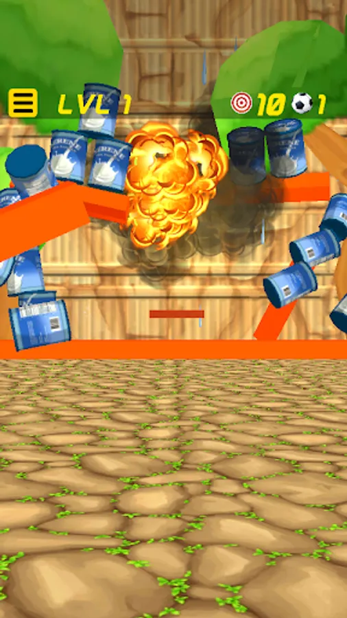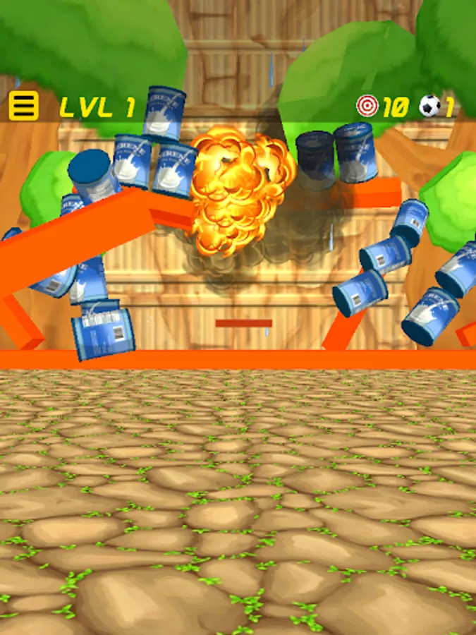 Some levels have special targets such as exploding cans and "bonus lives" cans that will give extra balls, and animated platform. The exploding cans can be used to your advantage because they can knockdown other objects around them, which usually means you'll have easier job to win the game.
