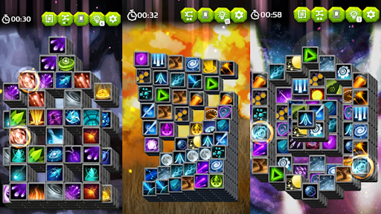 * Epic puzzles: over 3000 multi-dimensional majong boards, with varying symbols - free to play without In App Purchase. No tokens to collect and no locked levels. Freely pick, tour, and play any of the puzzles in any order.