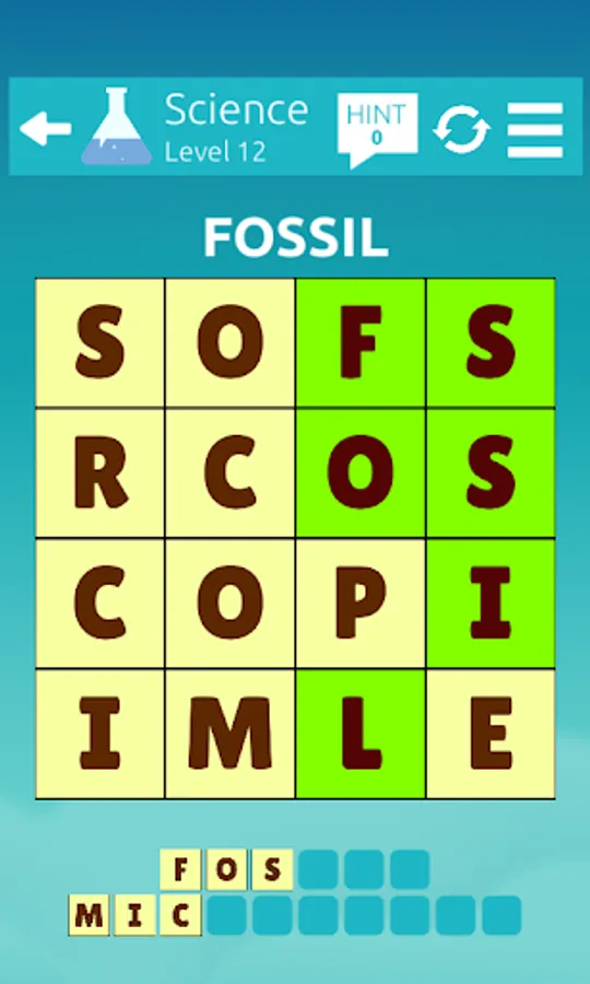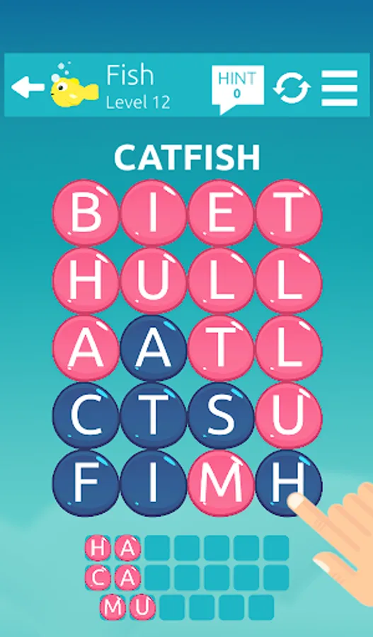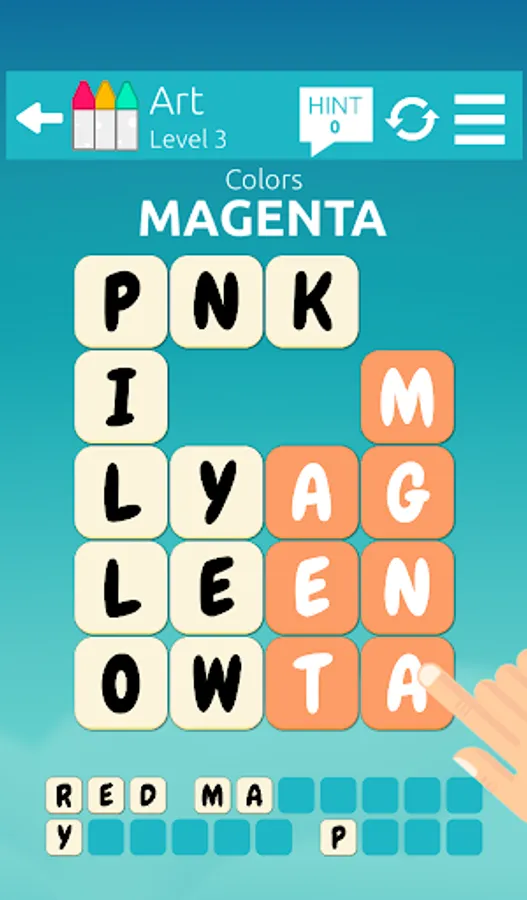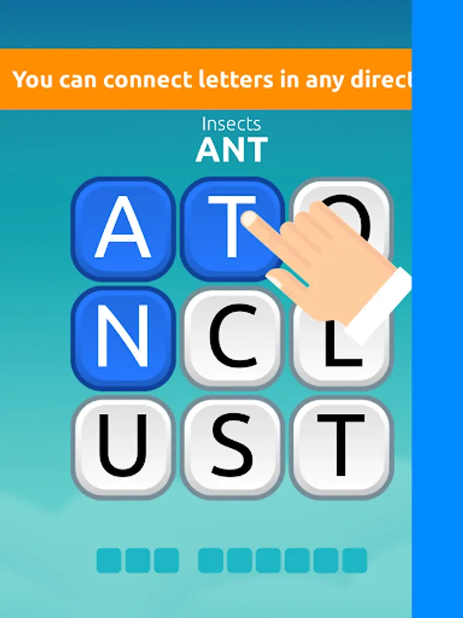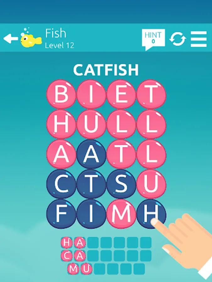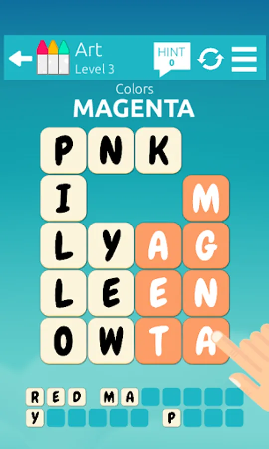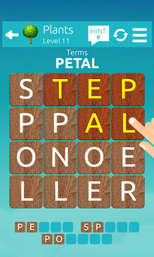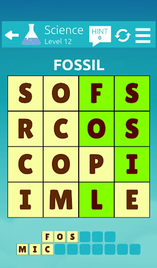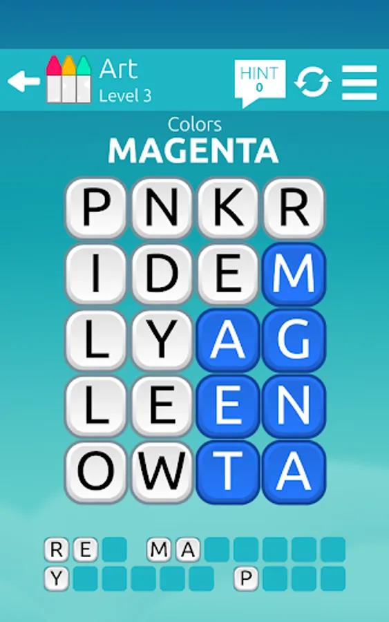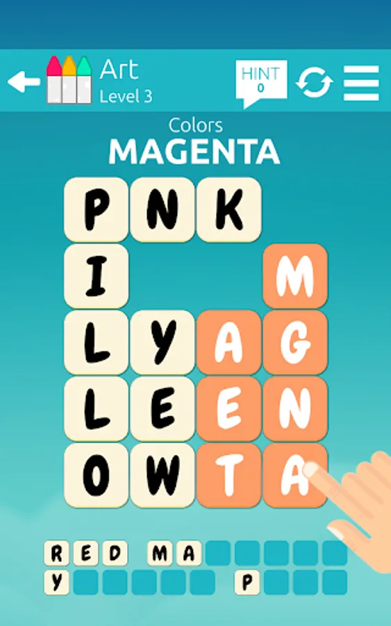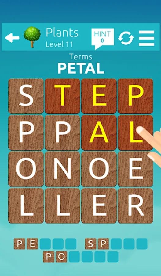If you find the correct word, the tiles will be removed. Remove all tiles by finding all the words to you win the level. If you're stuck, the Hint system can give you the first few letters of the words.