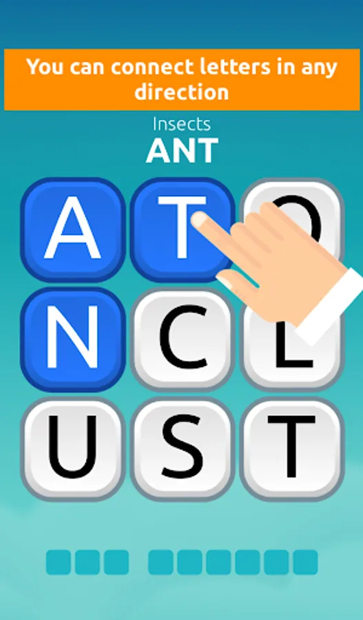 This game is a fun twist of the classic word-finding and word-searching games. It's like guessing and trivia game being combined with word search game mechanic. The goal of the game is to find all the words by connecting letter-tiles on a scrambled crossword-like grids. Find the beginning of a word, swipe on the tile and subsequent letters to forms the word. Or just tap each letter to form a word.