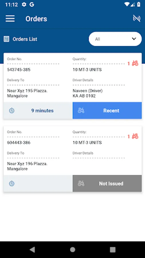 - Not Issued,Recent,Incoming, Delayed,Completed