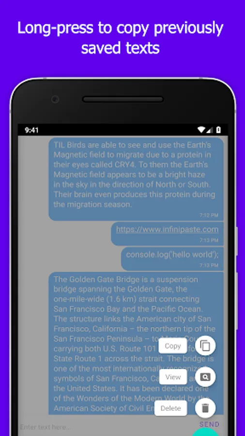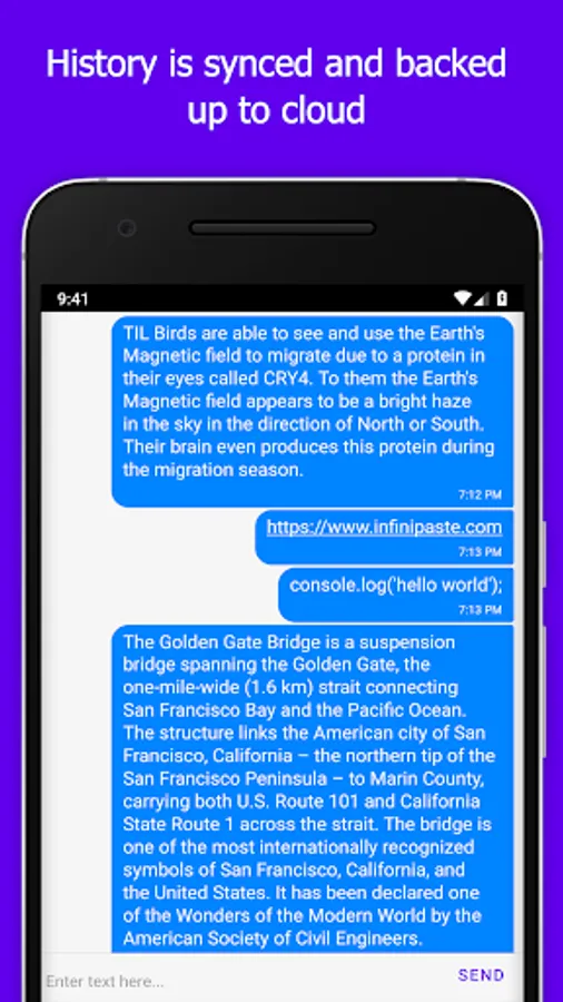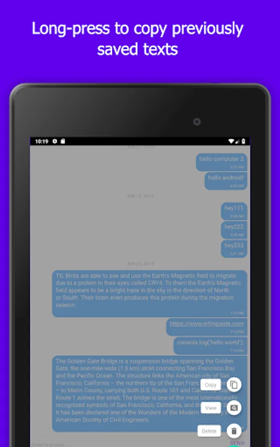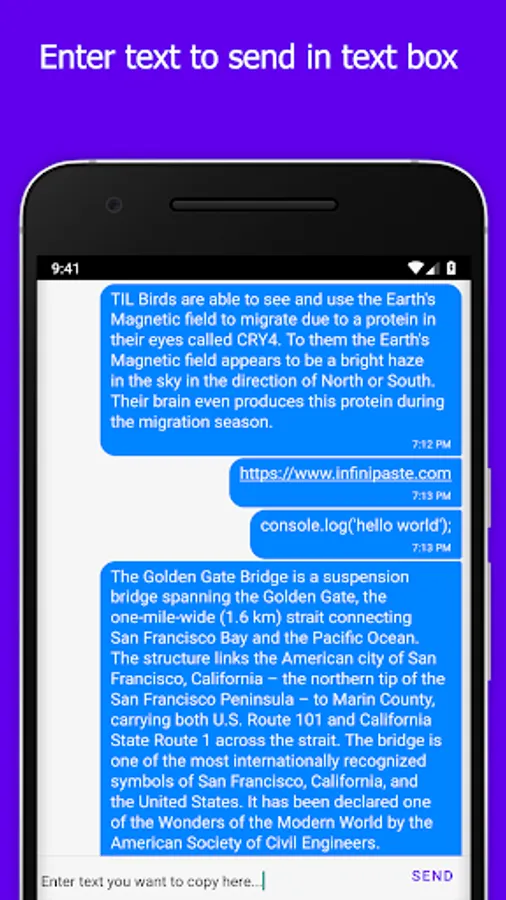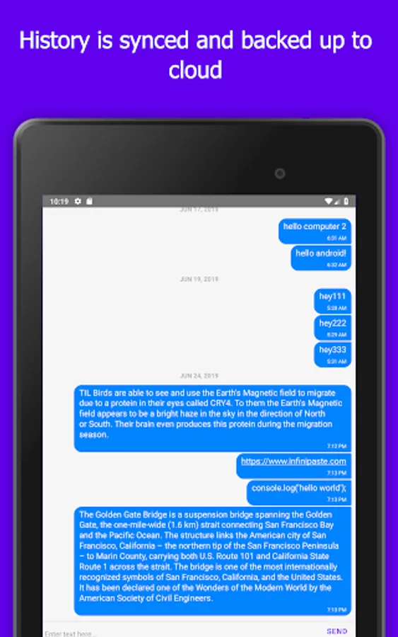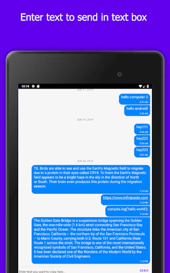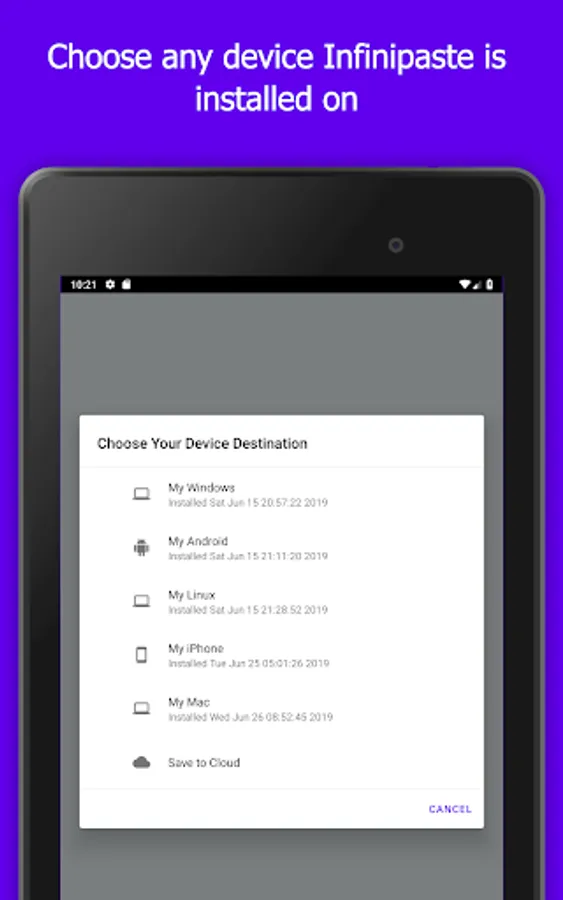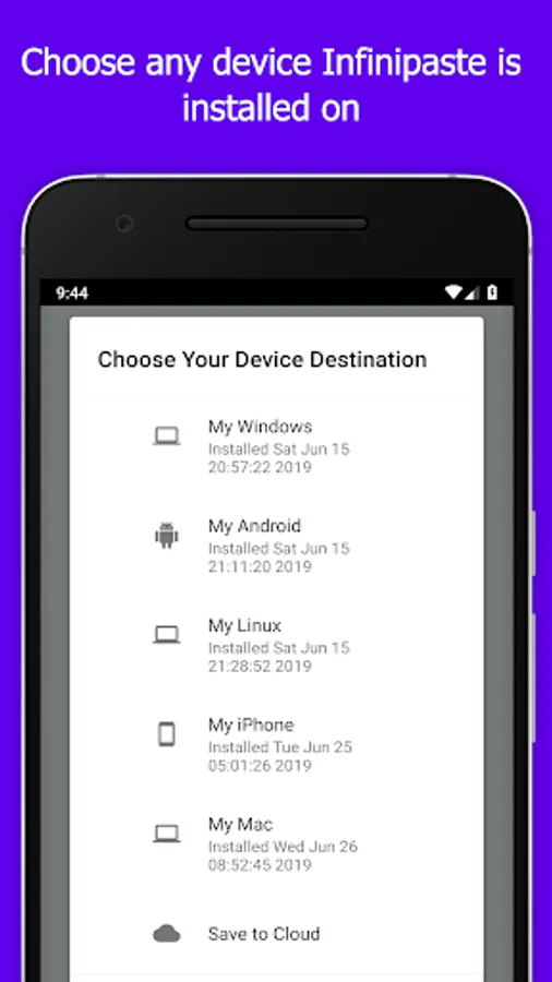 Infinipaste accomplishes all these and more. Once installed, Infinipaste allows you to copy paste to and from any other device it's installed on. Want to send iOS to Windows? We support it. Android to iOS? We support that too. In fact, you can send any combination of Android, iOS, MacOS, Windows, and Linux.
