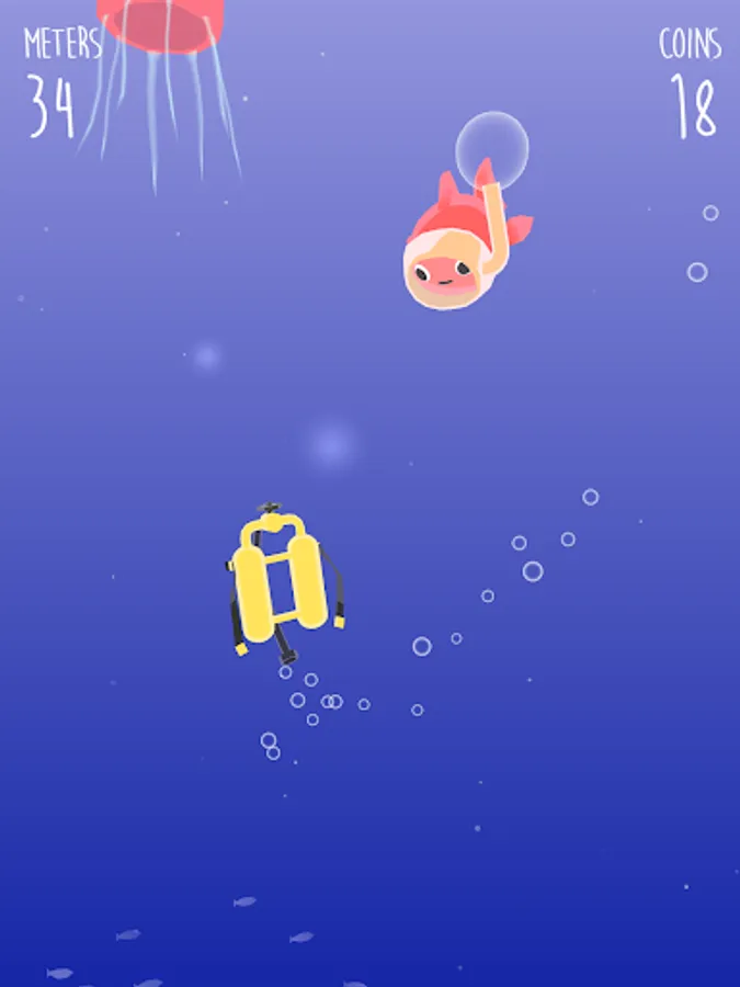 * Pick up bubbles to stay alive.