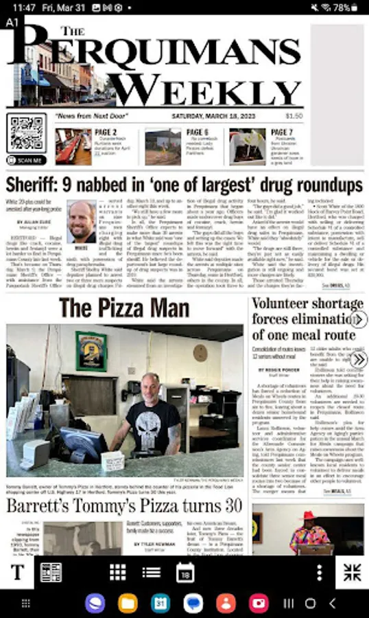 This is a digital replica of The Perquimans Weekly. This app is part of your all access membership. If you have questions about using the app please contact us at customercare@apgenc.com or call (252) 329-9505.