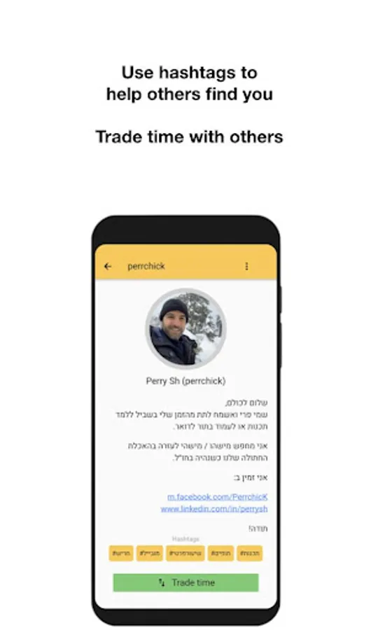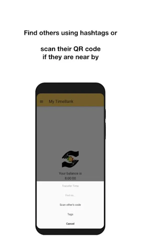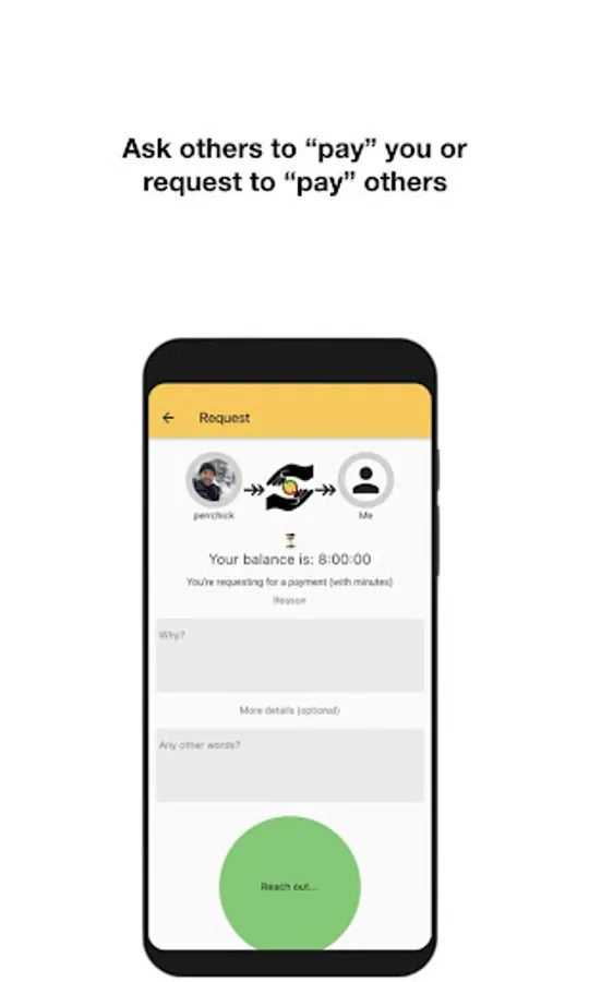 By using this app, you can use others' services and "pay" them using real life minutes. In order to increase the balance in your account simply provide others your services.