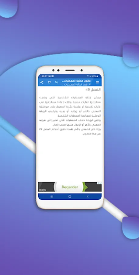 The application aims to facilitate access to the content of the law on the protection of personal data by citizens, people's deputies, associations and parties through which it is possible to view the full texts of its chapters in a timely and continuous manner or by searching for a specific chapter in addition to the ability to share the content of the chapters with others via short messages, mail Mail or social media.
