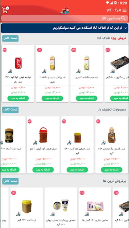 Aflak Kala aims to serve the dear and honorable people of Khorramabad, help save the time of dear customers and reduce pollution and urban traffic, by providing high-consumption products and basic Iranian household goods with various discounts (edible and non-edible) and Required services have been established.