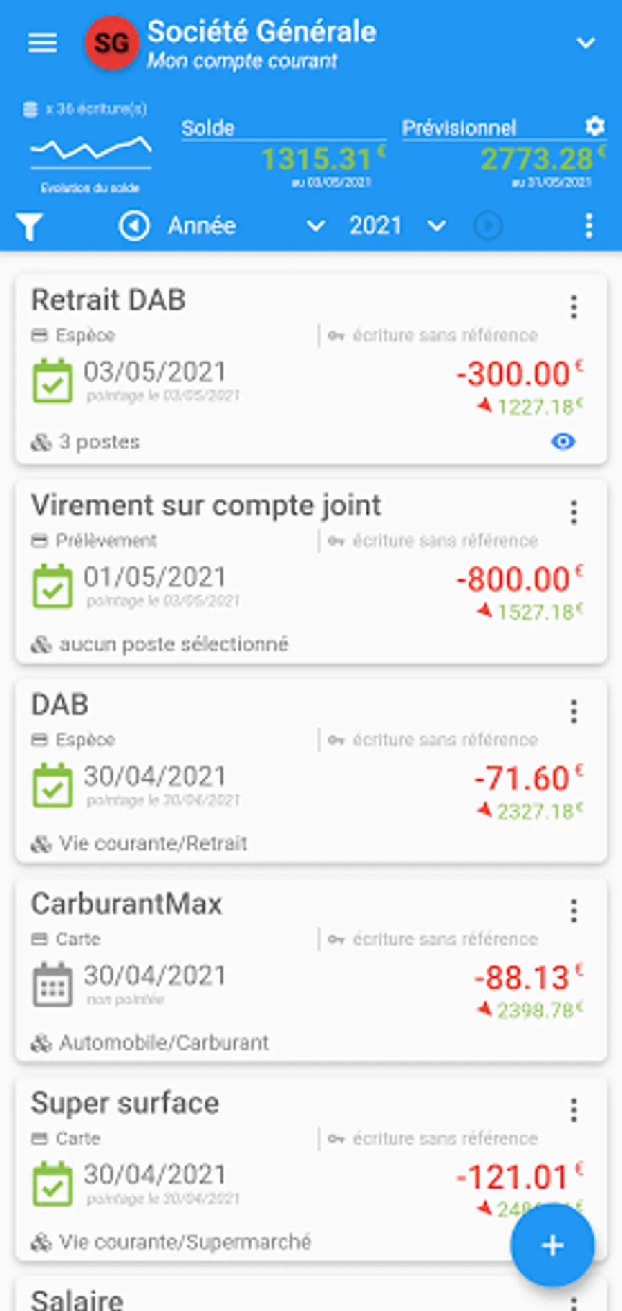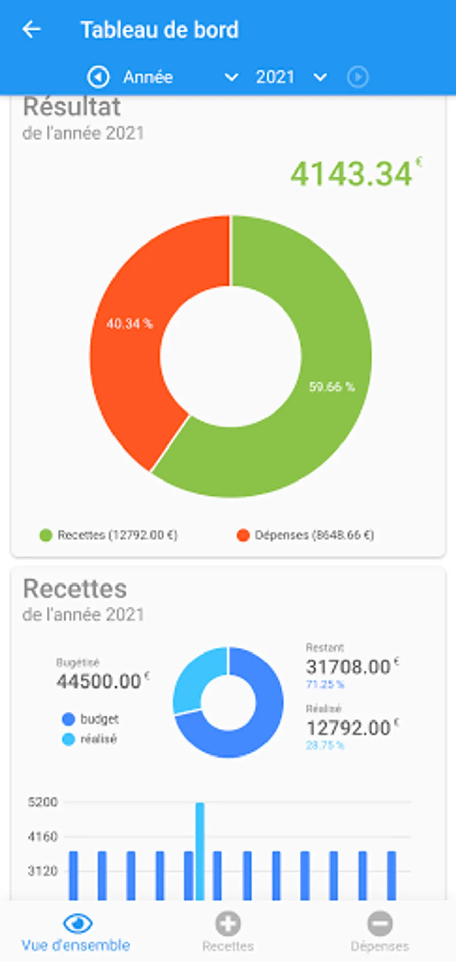 With Budget Manager you simply manage your bank accounts and your family budget. This application allows you to take control of your financial situation, define your monthly or annual budgets and monitor your daily expenses.