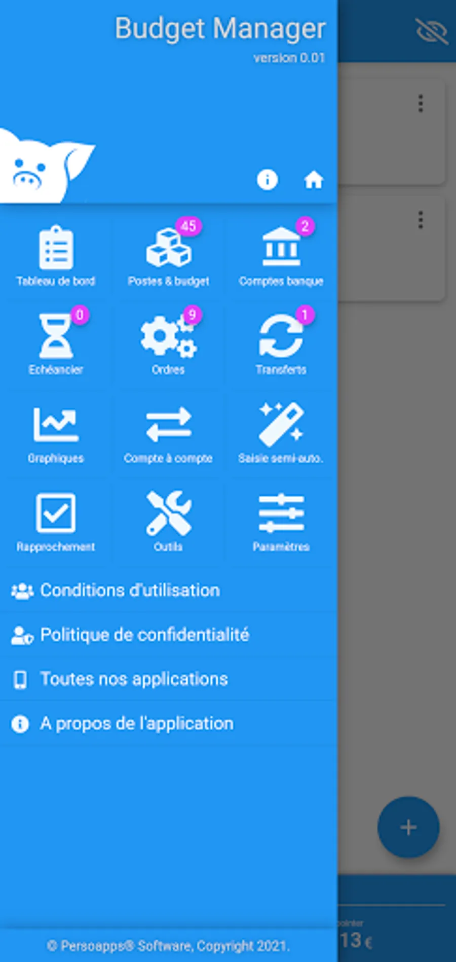 PersoApps Budget Manager is the tool for your financial freedom and independence through good management of your accounts and your budget.