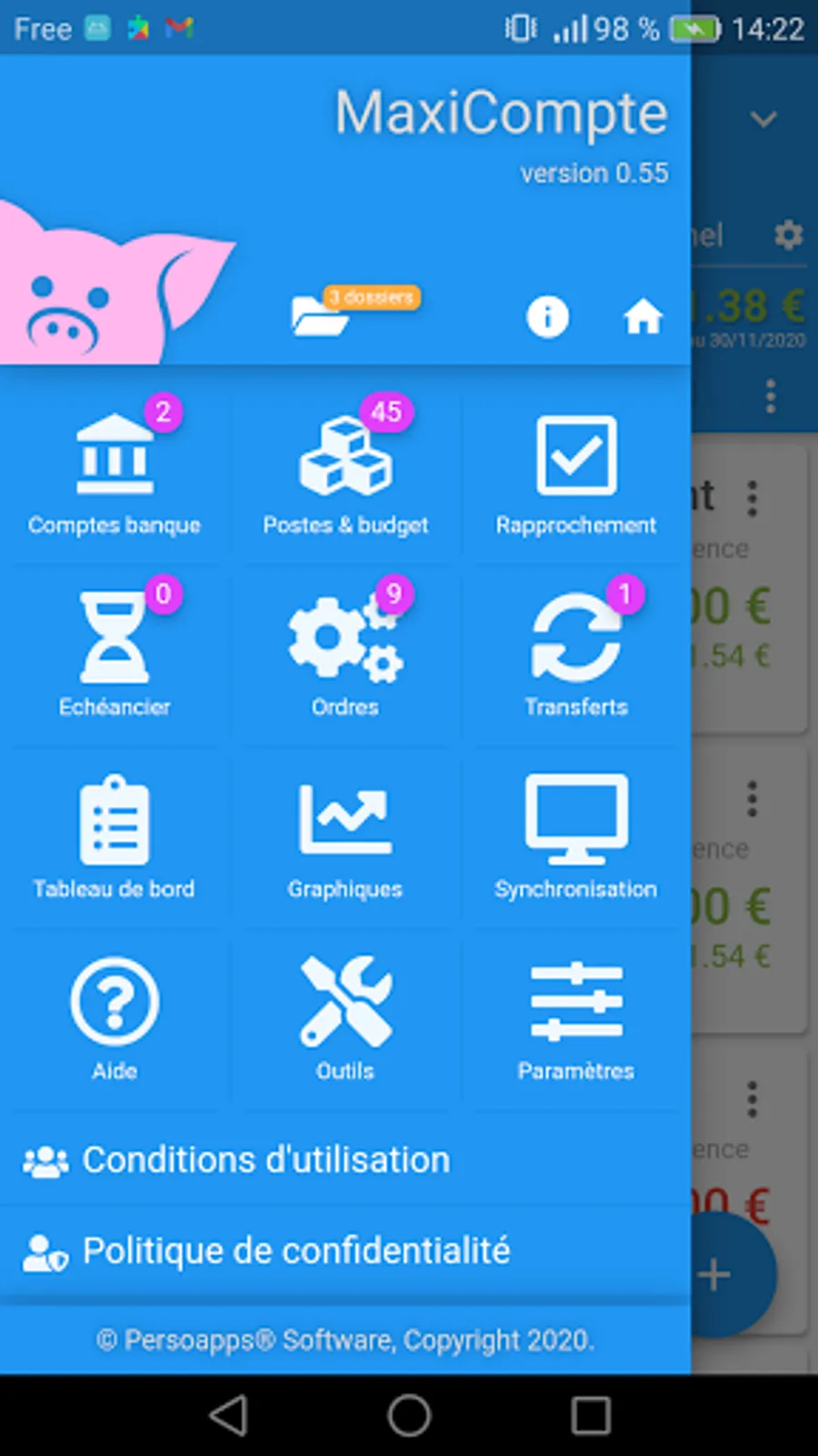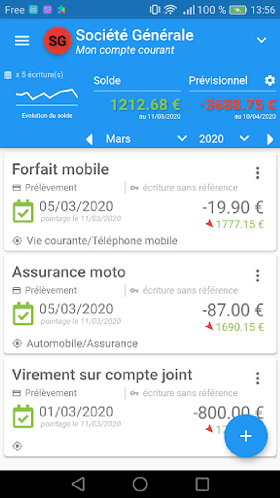 With MaxiCompte you can easily manage your bank accounts and your family budget. This application allows you to take control of your financial situation, set your monthly budgets and track your daily expenses.