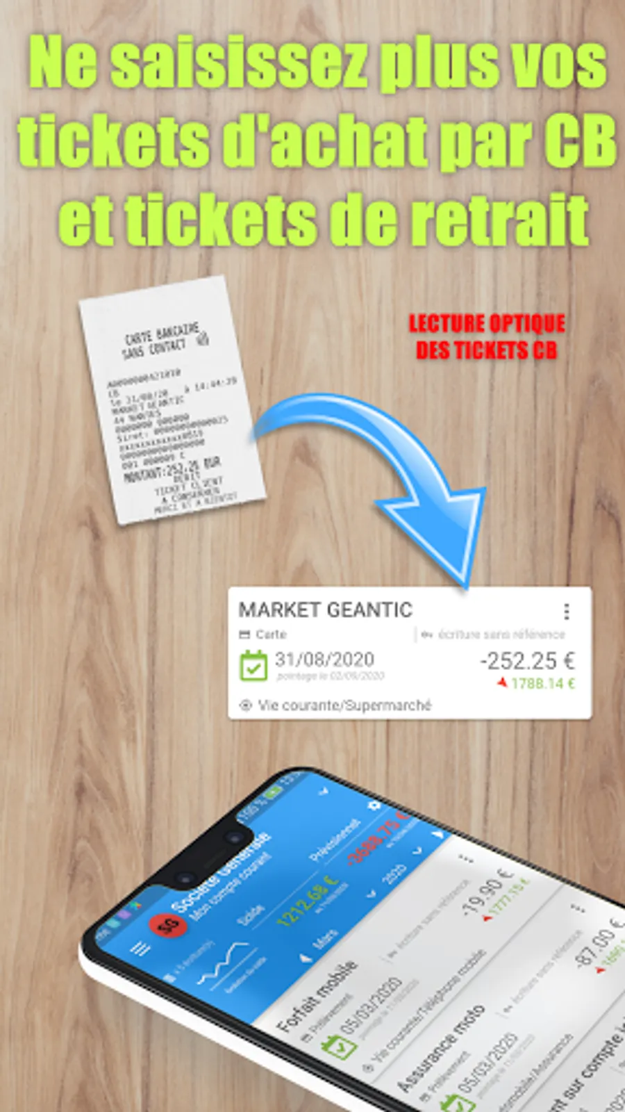 Immediately scan your bank card receipts after your purchases and automatically add the entry without manual entry.