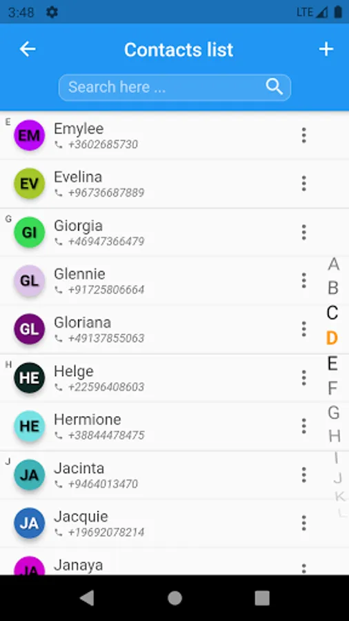 Add and menage contacts in the application and/or use the device contacts if you give the permission.
