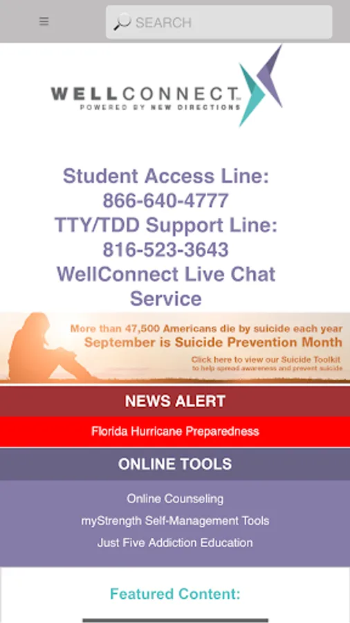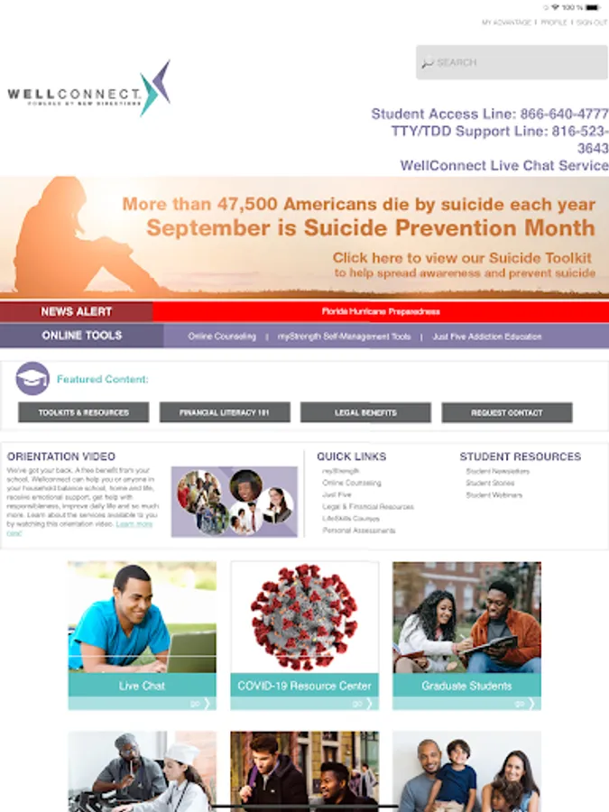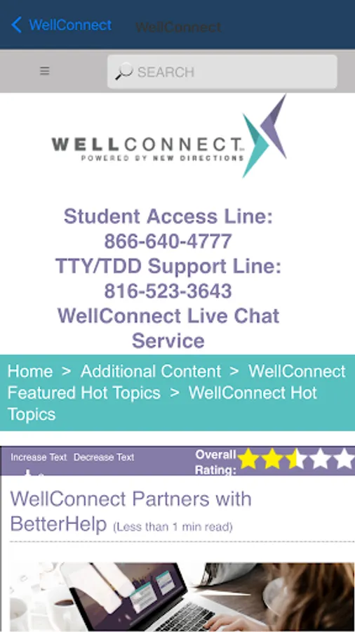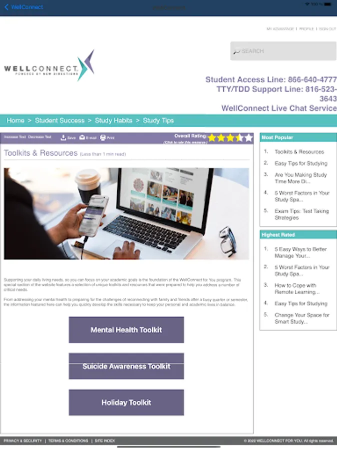 Our Students will be able to find online therapy, access online Wellness Tools and Resources, and Chat with our Student Wellness professionals for referral assistance