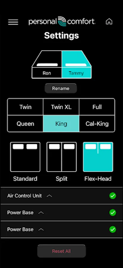 * Personal Comfort® air mattress with Bluetooth® enabled Gen III control unit