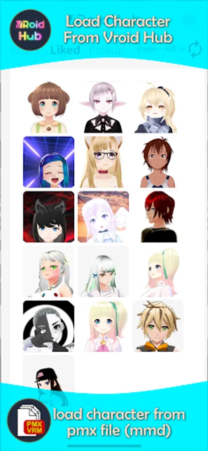 Support vroid hub: You can find your like character from vroid hub, or make your own character by vroid studio or vroid mobile, and load it through vroid hub.