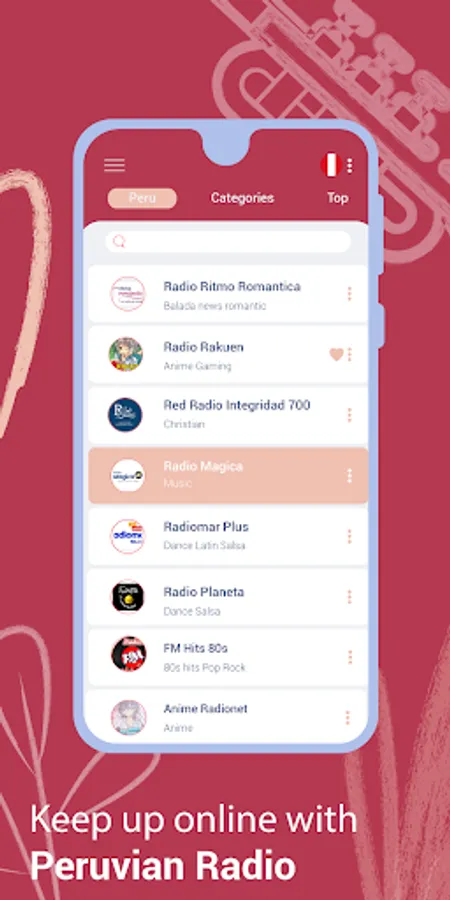 The following Peru Radio Live FM Player (Free Radio Stations: FM Radio & AM Radio) for Android is programmed to stream broadcasts live from Peru. Peru Radio Live FM Player Android Radio allows you to listen and enjoy numerous genres of music such as classical, rock, pop, instrumental, hip-hop, gospel, as well as Peru songs, talks, comedy, shows, concerts, gospel shows, Peru national music, news and other kinds of programs. Due to this Live Peru Radio Live Internet Radio / Free radio stations: FM Radio & AM Radio app Peru streaming) you are enabled to enjoy all the types of music as well as entertaining and. informative Peru programs, songs, live Peru News and other streaming You will be aware of what is going on in Peru by listening to our Android radio Internet Radio / Free radio stations: FM Radio & AM Radio app streaming and broadcast live.