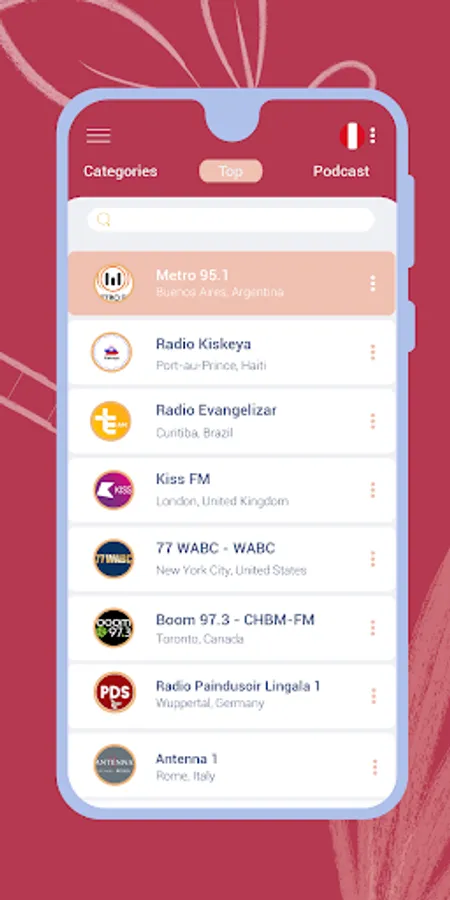 • Quick access to Radio from Countries section (Select the country and touch the Radio Station)
