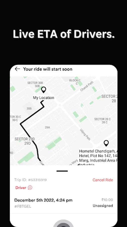 Tap the button to order a ride, get picked up by a nearby driver, and enjoy a low-cost ride to your destination.