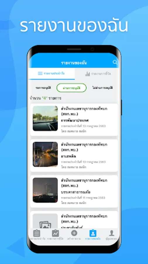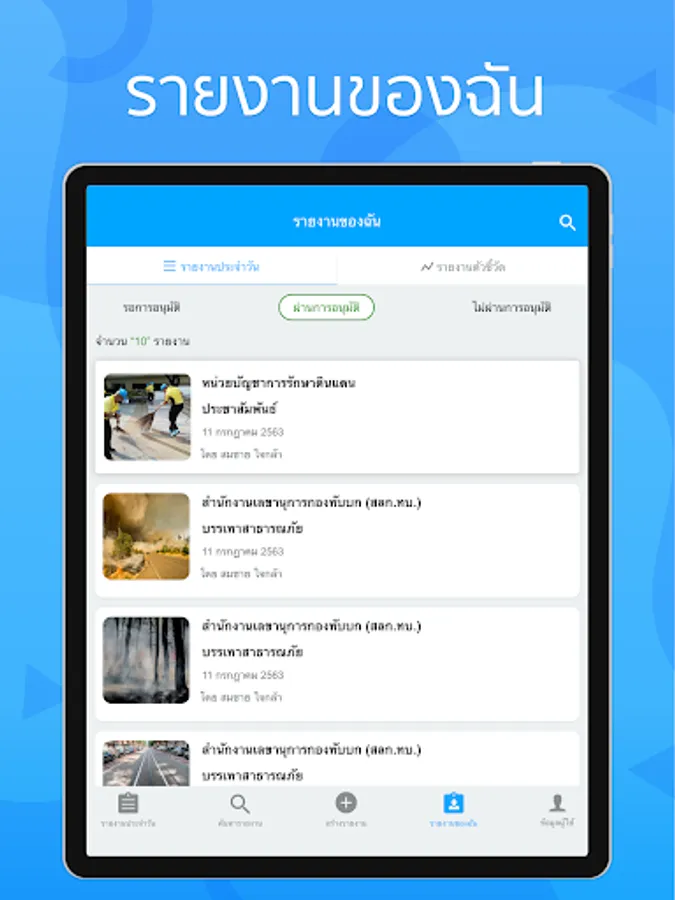 The application creates reports and sends reports. You can view reports of other people that have entered the system. The report must be approved by the moderator before showing results.