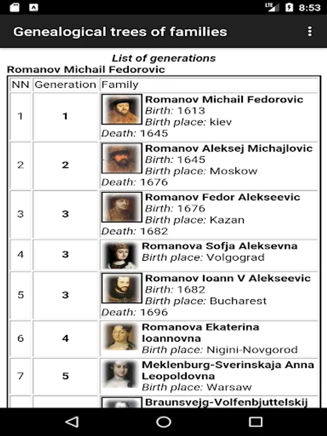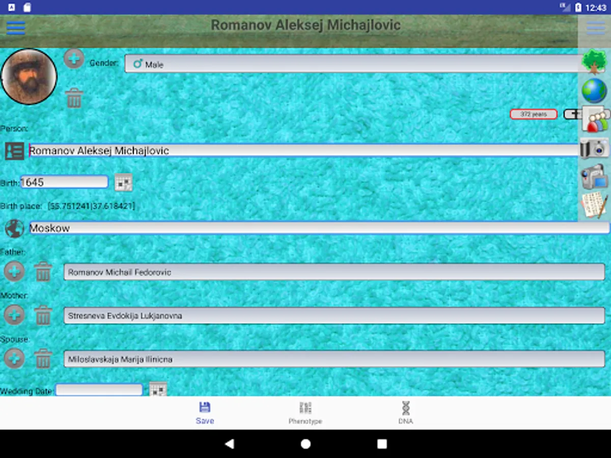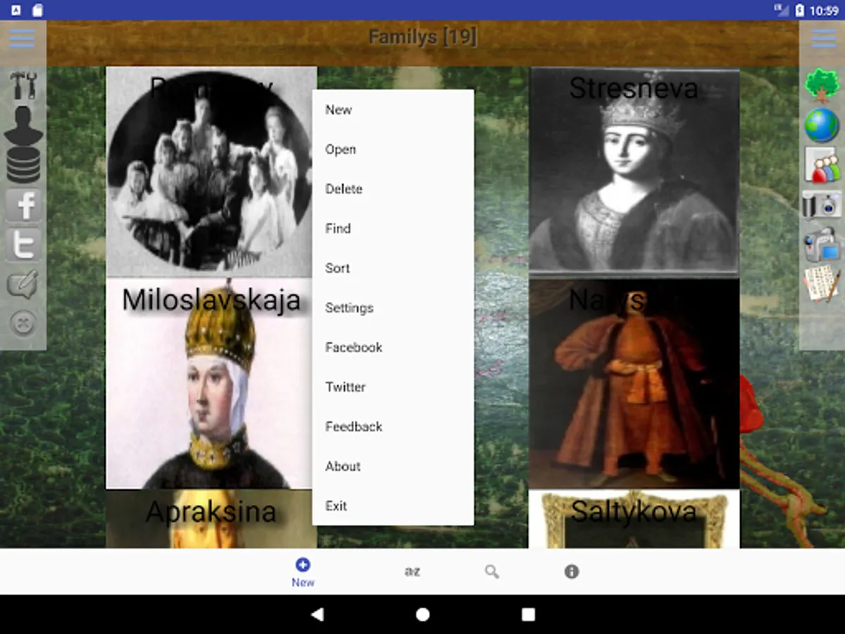 People in the program are grouped by families. The first screen is a list of families. The second screen stores data about persons belonging to the family. This allowed to create order in the lists of families and their personalities.
