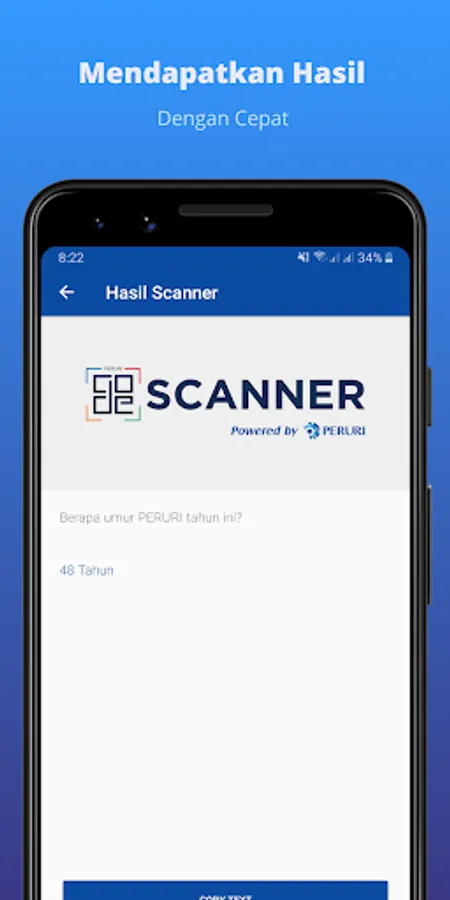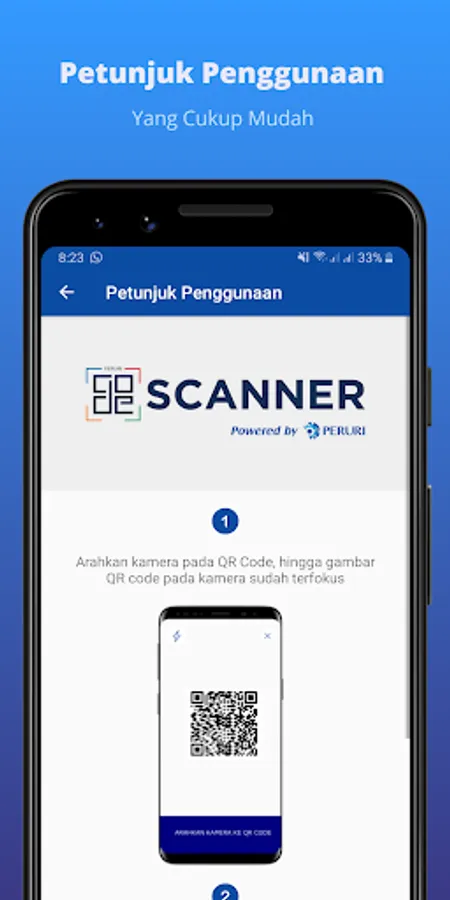 The use of PERURI Code Scanner can be directed the camera at the QR Code, until the QR code image on the camera is focused. Then, PERURI Code Scanner will read and recognize information in the code automatically.