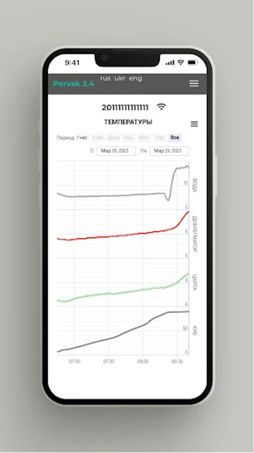 - Using the data section, you can monitor all process data using graphs in real time, as well as all process data with the time of change and power consumption control.