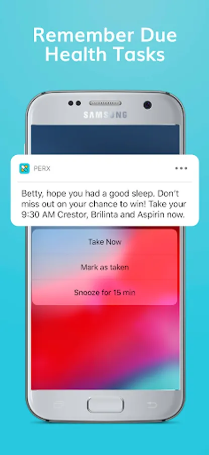 From gift cards to movie tickets to pharmacy vouchers, the clinically-supported Perx program rewards you for managing your health tasks and completing them on time - making your daily routine easy, fun and gratifying.