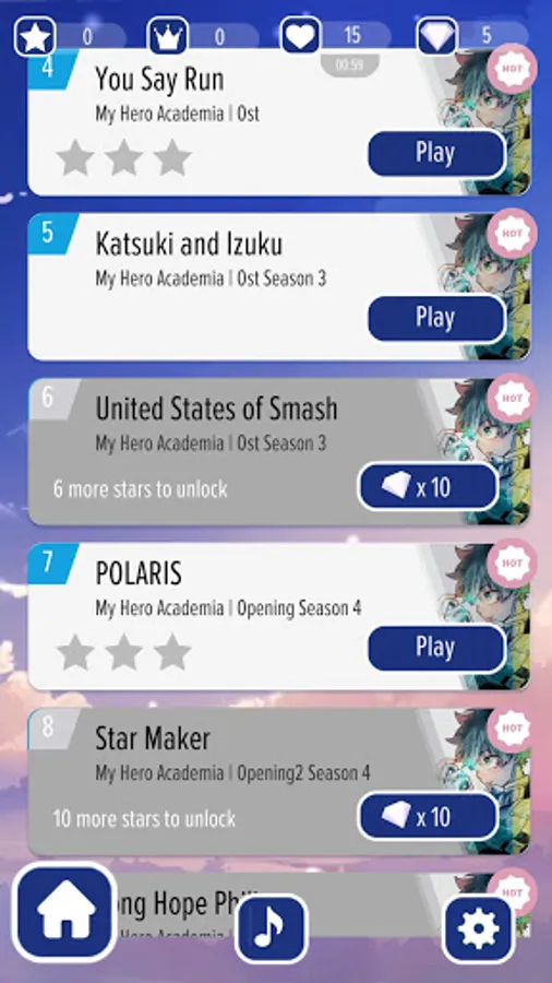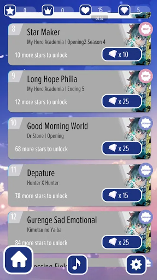 In this game, we provide some very cool and famous Opening, Ending, and Ost songs. Certainly very fun and addictive for you to play.