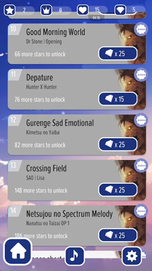 In this game, we provide some very cool and famous Opening, Ending, and Ost songs. Certainly very fun and addictive for you to play.