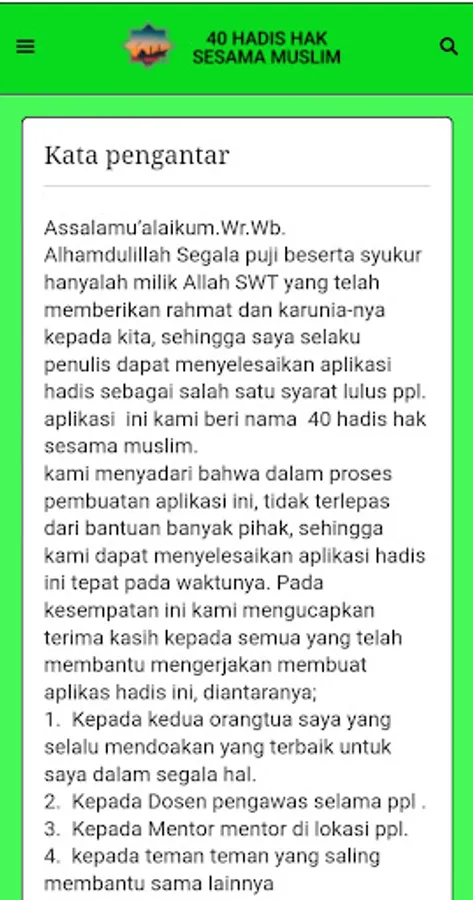 This application discusses 40 hadiths related to the rights of fellow Muslims with the aim of making it easier for students and the general public to be able to access them.