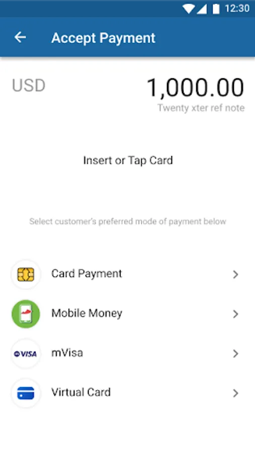 It integrates various payment methods including Cash, Credit, Mobile Money, Visa and MasterCard.