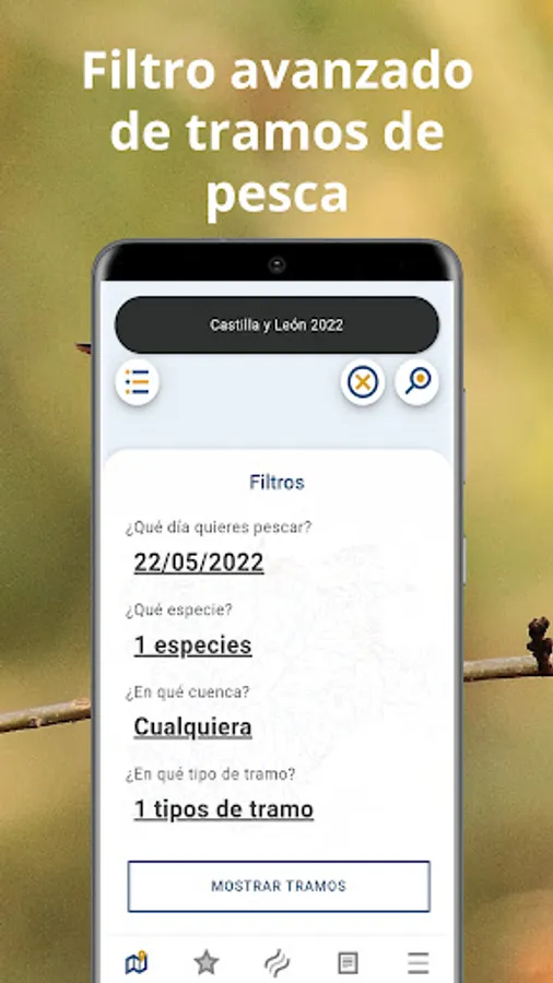 • Search: You can quickly locate the section or river where you want to fish