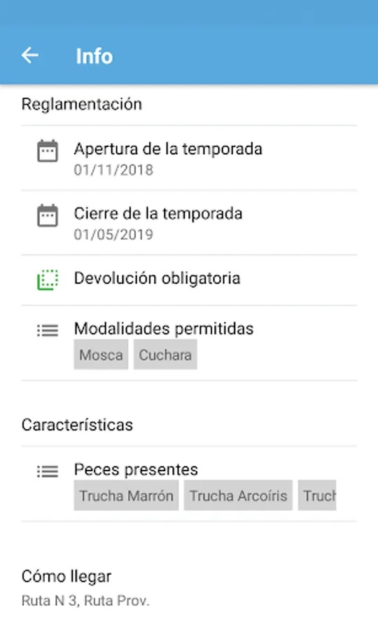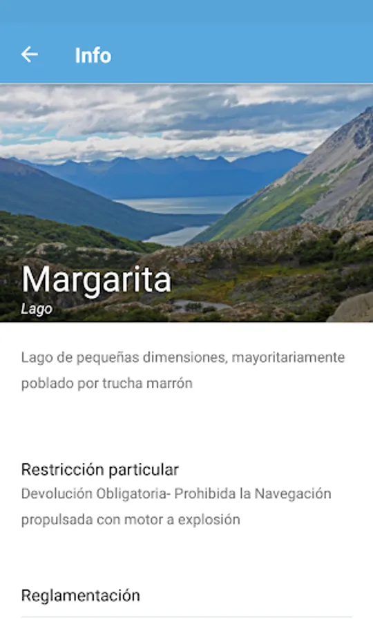 The application provides information, with and without connection, about the general regulation of sport fishing activity in the Province of Tierra del Fuego.