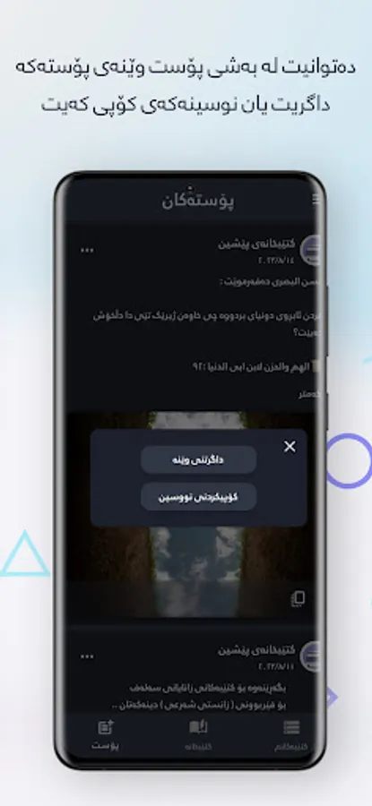 The app has several sections, including a books section that contains all the books you can download, and a posts section that is like a small social media and you can see posts without having an account