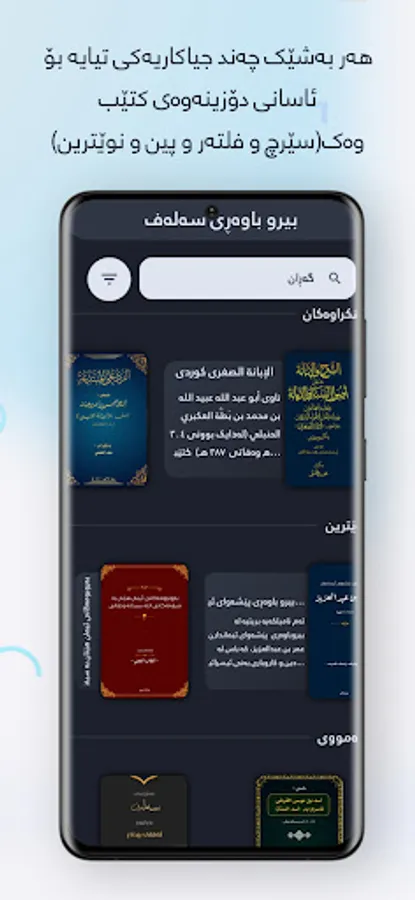 By the grace of Allah, we have installed this application that consists of the books of the Salaf in Kurdish and Arabic, which is the first three generations of this religion, which consists of several parts