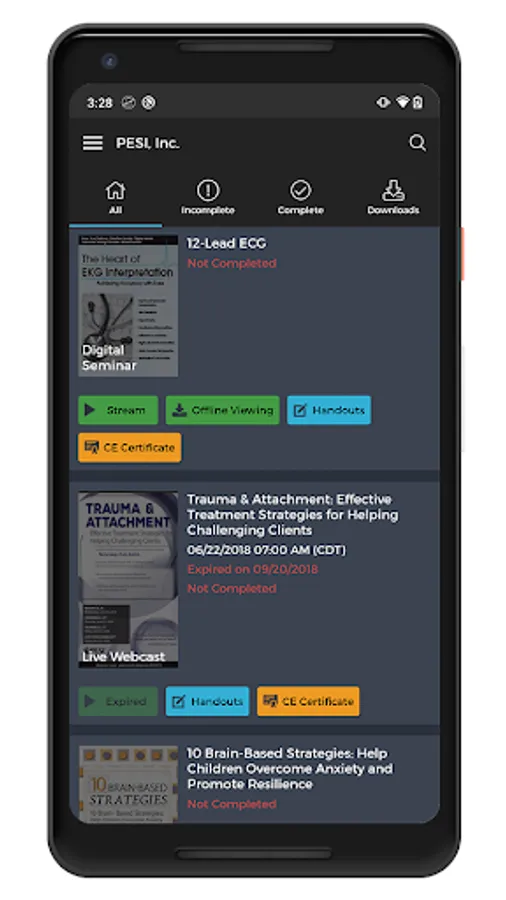 The PESI Mobile app connects seamlessly with your PESI.com account and can be used to: