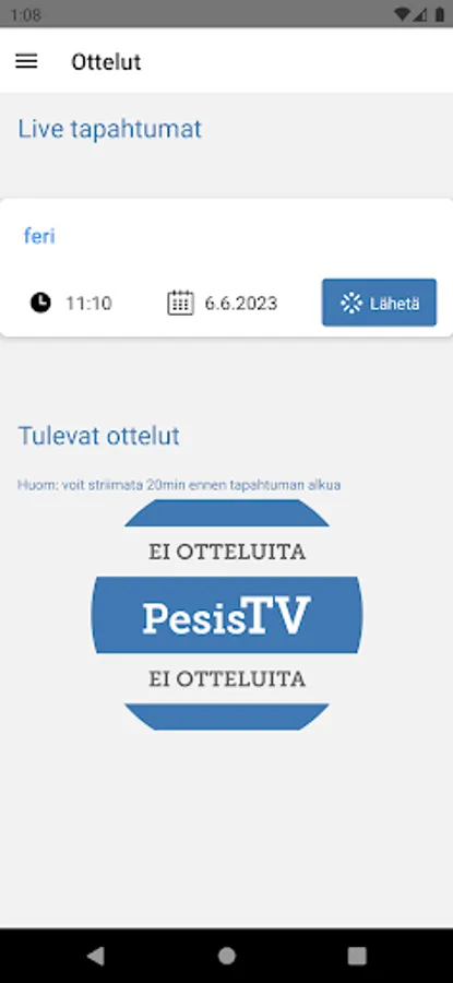 PesisTV Broadcaster application for streaming Pesäpallo matches.