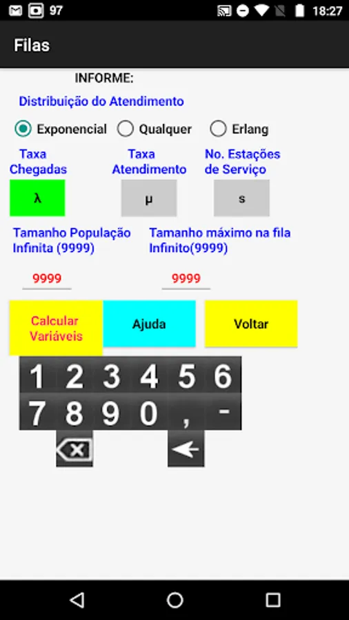 Finally, in the case of Queues calculations are allowed for the 7 basic models of Queue Theory.