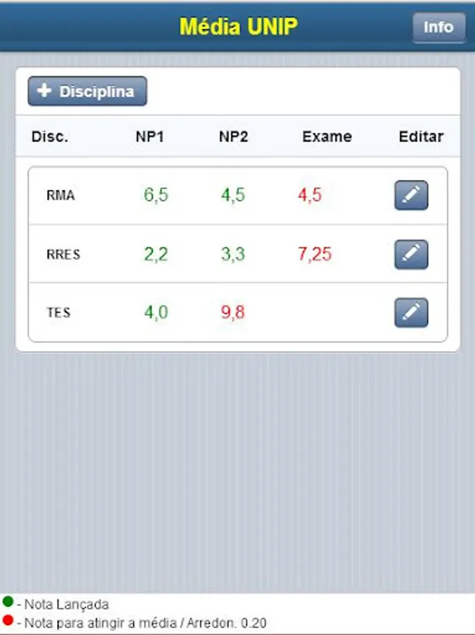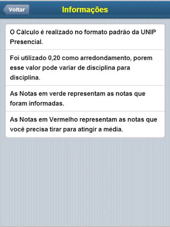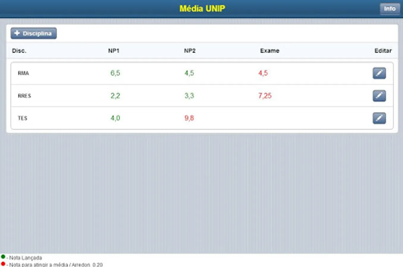 Using the conventional calculation simply enter your note and the application will show how much you need to take the exam and NP2, ie, how much you need to take the evidence not to fail in the field.
